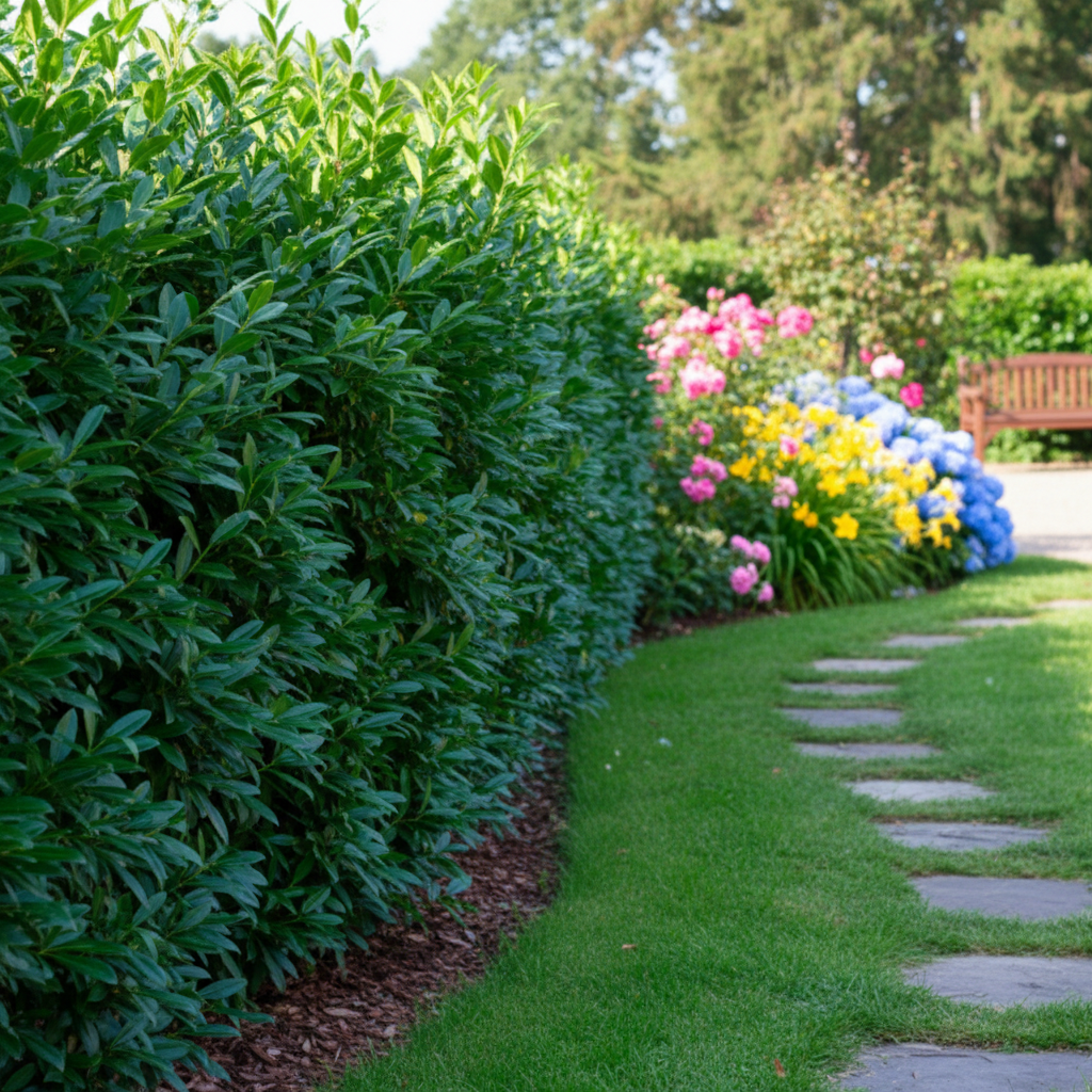 Laurowiśnia wschodnia ‘Caucasica’ (Prunus laurocerasus) to zimozielony, szybko rosnący krzew o gęstym, wyprostowanym pokroju, który doskonale sprawdza się jako roślina żywopłotowa. Osiąga 3–4 m wysokości i około 2 m szerokości, tworząc zwartą, elegancką ścianę zieleni. Jej liście są ciemnozielone, skórzaste i błyszczące, a ich podłużny kształt dodaje roślinie dekoracyjnego wyglądu przez cały rok. Wiosną (kwiecień–maj) krzew obsypuje się białymi, pachnącymi kwiatami, które przyciągają owady zapylające. Jesienią pojawiają się czarne, błyszczące owoce, chętnie zjadane przez ptaki (ale trujące dla ludzi). Idealna do sadzenia w formie żywopłotów, na rabatach oraz pojedynczo. Dzięki gęstemu ulistnieniu i szybkiemu wzrostowi laurowiśnia ‘Caucasica’ to doskonały wybór dla osób szukających eleganckiej i łatwej w pielęgnacji rośliny osłonowej.