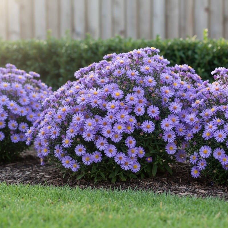 Najlepiej rośnie w słońcu, ale poradzi sobie też w lekkim półcieniu – w słońcu będzie kwitł najobficiej. Wystarczy zwykła, ogrodowa ziemia; ważne, by nie stała w wodzie, zwłaszcza zimą i po ulewach. Podlewaj regularnie w czasie upałów, bo przesuszenie latem potrafi skrócić jesienne kwitnienie. Wiosną zetnij zeszłoroczne pędy nisko przy ziemi, żeby kępa ładnie odbiła. Uważaj na biały nalot na liściach pod koniec lata – pomaga przewiew i podlewanie prosto w ziemię, a nie po liściach.