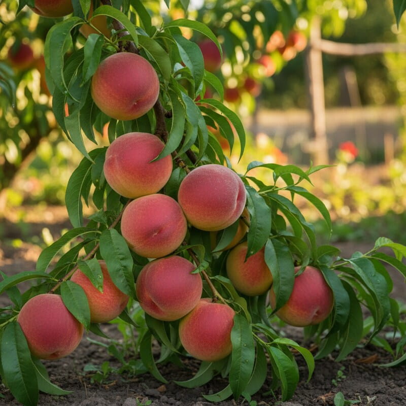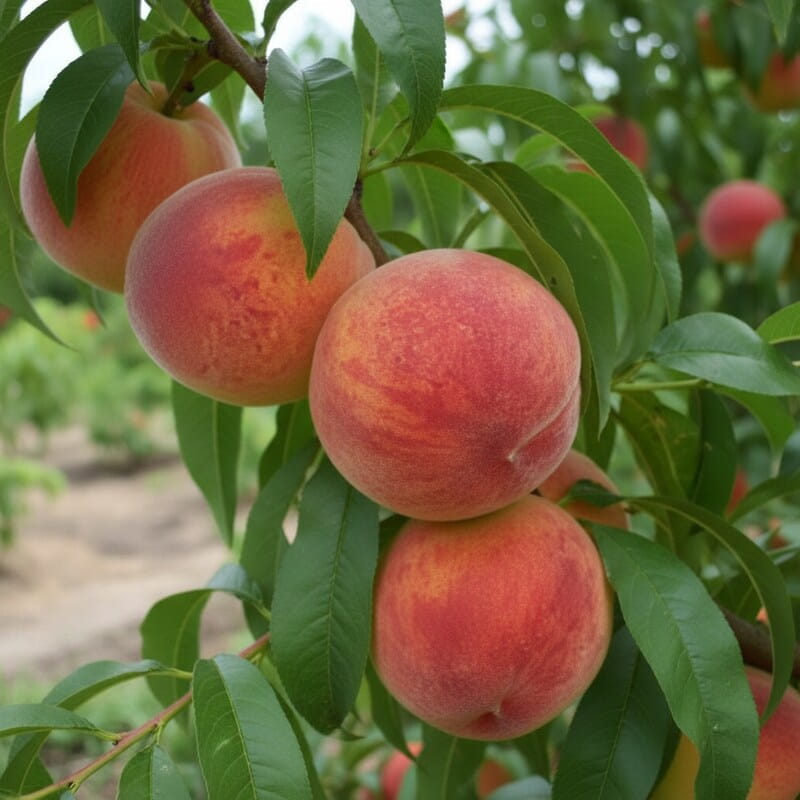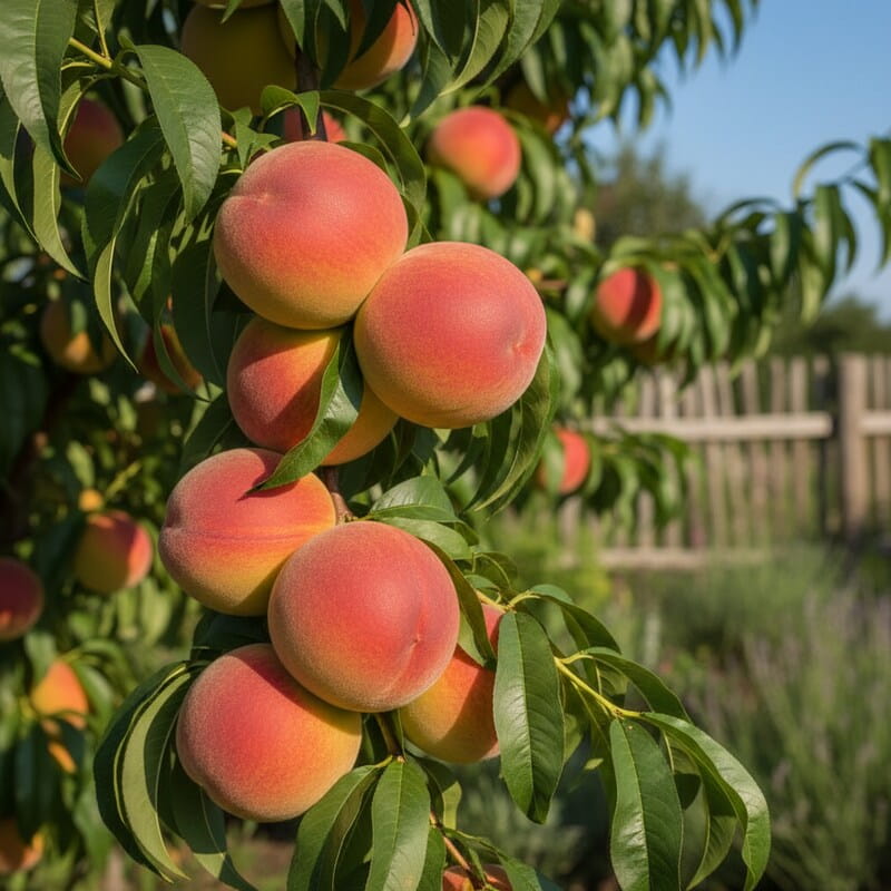 Brzoskwinia ‘Harbinger’ to wczesna odmiana, która nagradza soczystymi, słodko-kwaskowymi owocami już na początku lata. Jej skórka ma ciepły, żółto-pomarańczowy kolor z czerwonym rumieńcem, a miąższ jest aromatyczny i miękki – idealny do jedzenia prosto z drzewa. Wiosną drzewko obsypuje się różowymi kwiatami, które wyglądają jak delikatne konfetti na gałęziach. To roślina, która łączy piękne kwitnienie z szybkim owocowaniem. Jeśli chcesz zacząć sezon od własnych owoców, to jedna z najwcześniejszych i najbardziej wdzięcznych brzoskwiń.