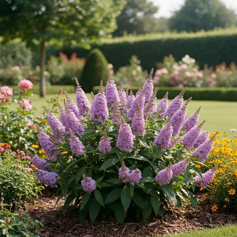 Budleja Dawida ‘Butterfly Candy Little Lila’ to kompaktowy krzew, który latem zmienia się w pachnącą, liliową fontannę. Wypuszcza mnóstwo gęstych kwiatostanów w chłodnym, fioletowo-liliowym odcieniu, a do tego roztacza słodki zapach, który przyciąga motyle i pszczoły. Odmiana rośnie nisko i równo, więc łatwo wpasujesz ją w mały ogród, na przód rabaty albo do dużej donicy na taras. Dzięki temu, że kwitnie długo i obficie, daje szybki efekt „wow” bez skomplikowanej pielęgnacji. Jeśli marzy Ci się roślina, która ożywia ogród ruchem motyli i daje mnóstwo kwiatów przez całe lato, ‘Little Lila’ będzie idealna.