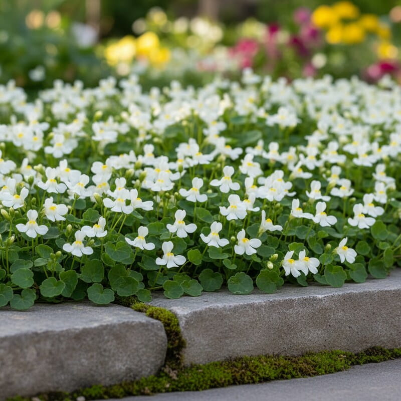 Cymbalaria lubi półcień i lekką, przepuszczalną ziemię – zwykła ogrodowa ziemia, niech nie stoi woda będzie idealna. Podlewaj umiarkowanie, szczególnie w czasie upałów, bo przesuszenie może spowolnić kwitnienie. Roślina nie wymaga cięcia, ale przekwitłe kwiaty możesz usuwać, aby przedłużyć kwitnienie. Uważaj na miejsca, gdzie zalega woda – podłoże musi być przepuszczalne, aby korzenie nie gniły.
