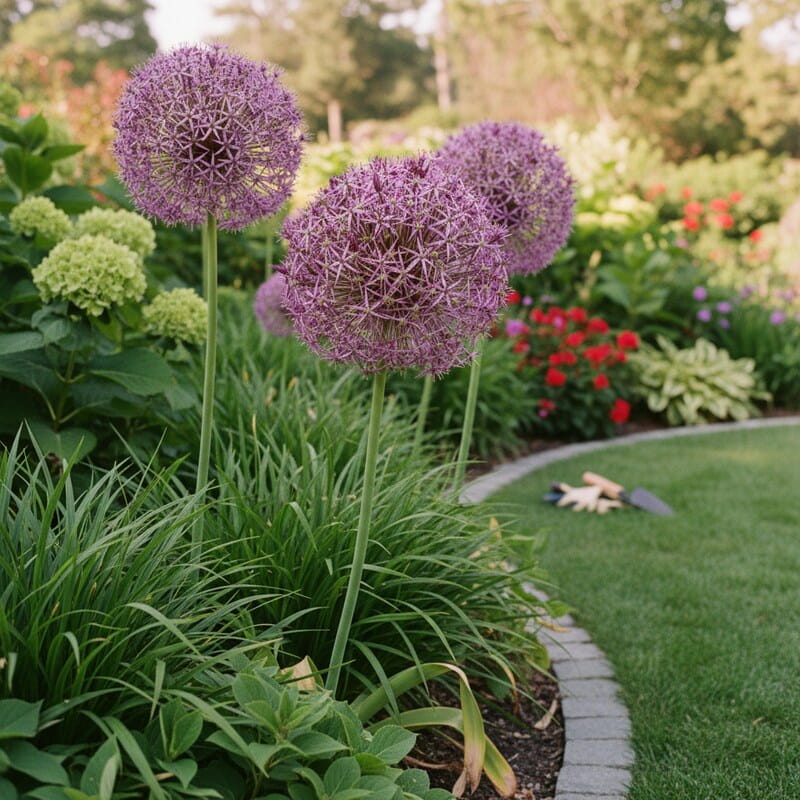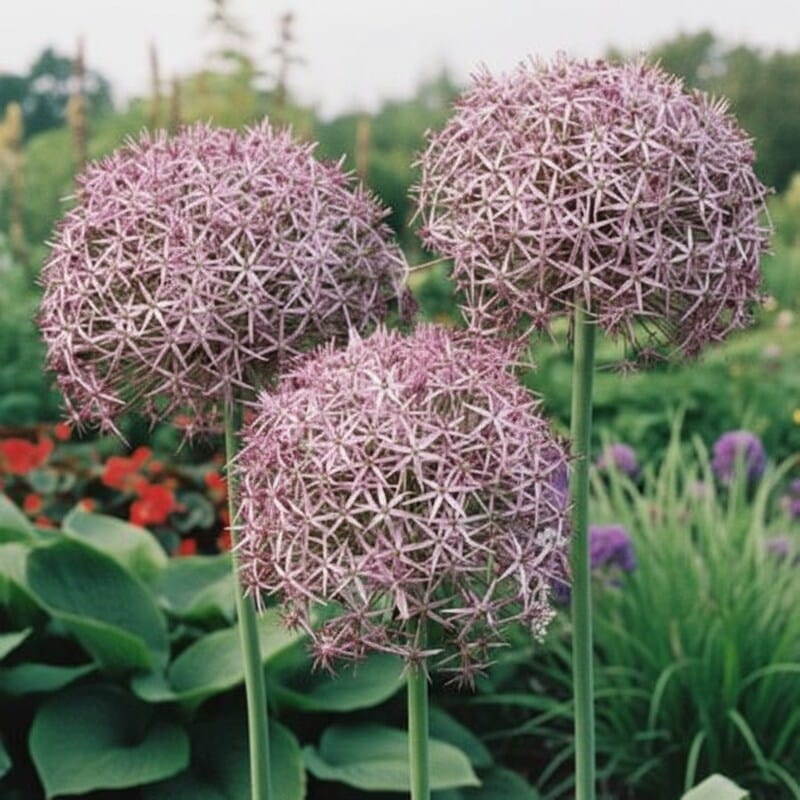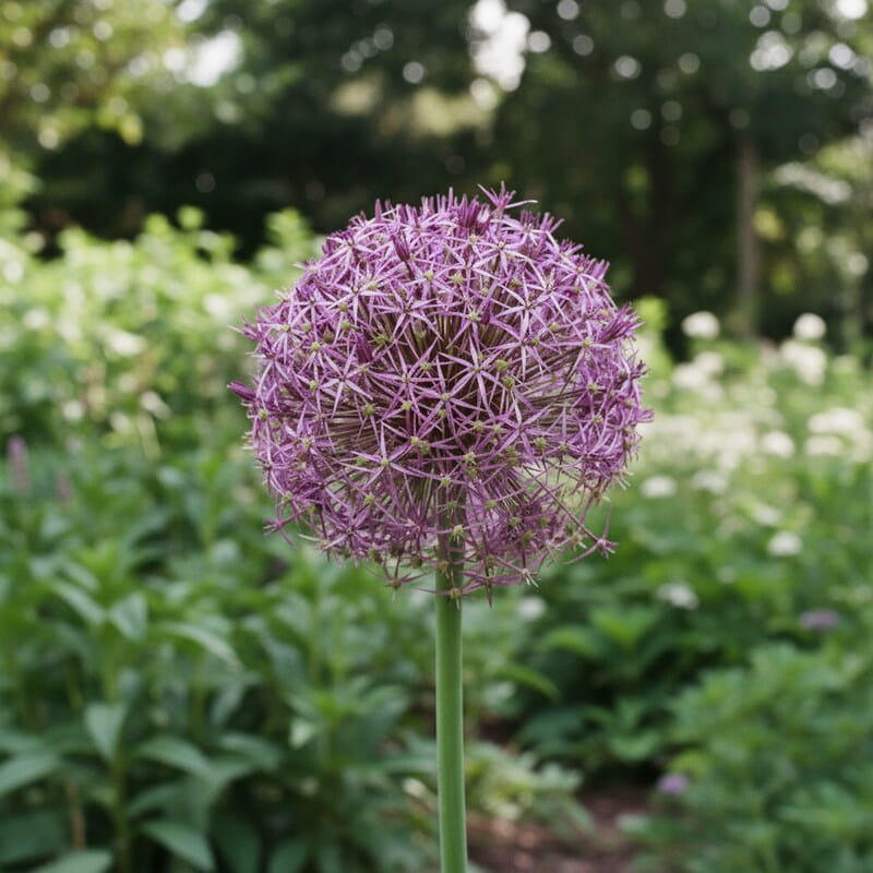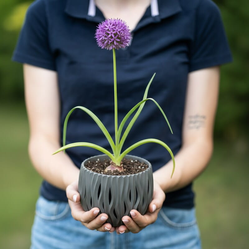 Czosnek Krzysztofa to prawdziwy „fajerwerk” na rabacie – jego ogromna, ażurowa kula kwiatów wygląda jak fioletowa gwiazda zrobiona z setek małych iskier. Kiedy zakwitnie, trudno oderwać wzrok: kwiatostan jest lekki i przestrzenny, a jednocześnie bardzo wyrazisty, więc robi efekt wow nawet w prostym ogrodzie. Świetnie wygląda między trawami i bylinami, bo unosi się nad nimi jak dekoracyjna rzeźba. Po przekwitnięciu nadal jest ozdobny – zaschnięta kula wygląda jak naturalna ozdoba i nadaje się też do suchych bukietów. Jeśli chcesz rośliny, która daje spektakularny, kulisty kwiat i dekorację także po kwitnieniu, to jest strzał w dziesiątkę.