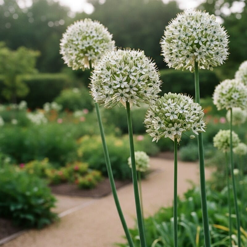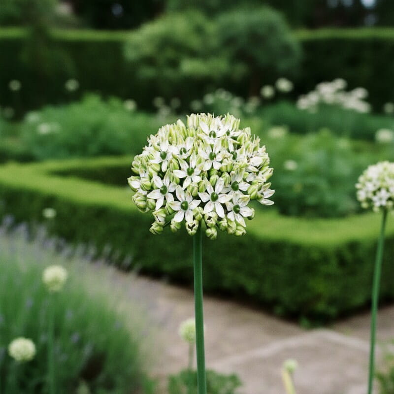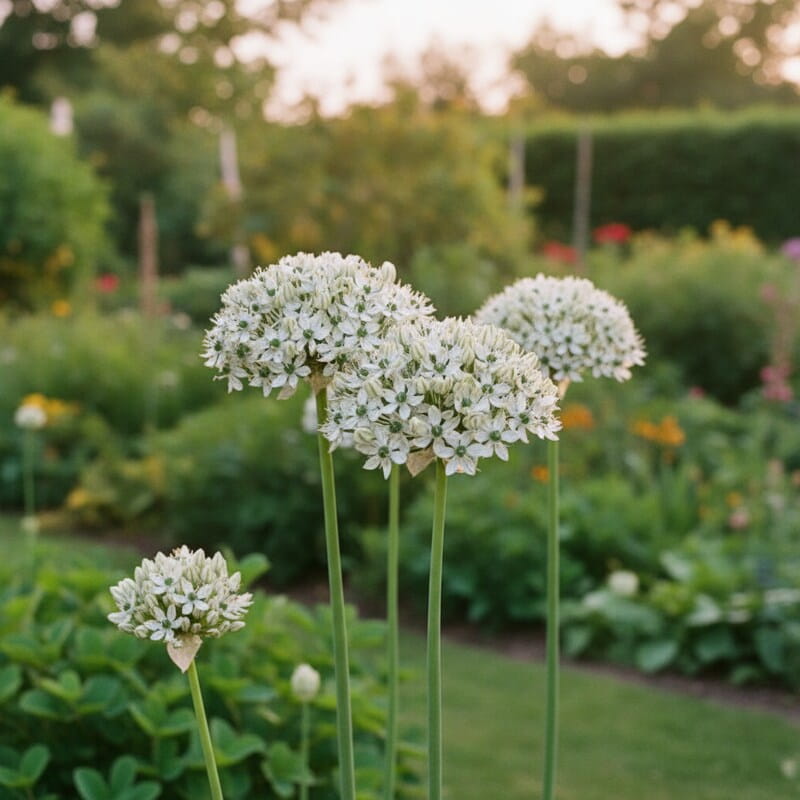 Czosnek czarny to wiosenno-letni detal, który wygląda bardzo elegancko i „na czysto”. Z cebulki wyrasta smukła łodyga, a na jej szczycie pojawia się okrągły kwiatostan w jasnych barwach, często z ciemniejszym środkiem, co daje przyjemny kontrast jak kropka postawiona na końcu zdania. W ogrodzie robi wrażenie lekkości – kwiaty unoszą się nad liśćmi i pięknie wyglądają wśród traw oraz bylin. To roślina, która nie wymaga ciągłego pilnowania: sadzisz i czekasz na efekt. Jeśli chcesz eleganckiego akcentu na rabacie i rośliny, która daje pewny wiosenny pokaz bez wysiłku, czosnek czarny jest świetnym wyborem.