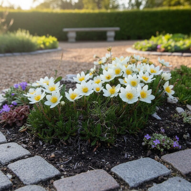 Dębik ośmiopłatkowy najlepiej rośnie w półcieniu lub cieniu, w zwykłej ogrodowej ziemi, przepuszczalnej i lekko wilgotnej. Podlewaj regularnie w suchych okresach, ale unikaj zastoin wody. Roślina nie wymaga cięcia, ale po przekwitnięciu możesz lekko przyciąć pędy, aby zachować zwartą formę i pobudzić nowe przyrosty. Uważaj na miejsca, gdzie podłoże długo pozostaje mokre – może to ograniczyć rozwój i zdrowy wygląd rośliny.