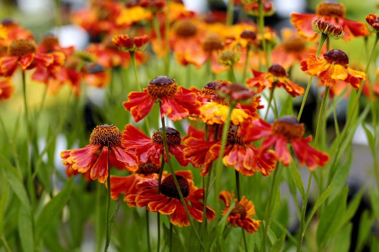 Dzielżan ogrodowy ‘Salsa’ (Helenium hybridum) to kompaktowa odmiana dzielżana o ogniście czerwonych kwiatach z żółto-pomarańczowymi refleksami i ciemnym środkiem, które kwitną obficie od lipca do września. Kwiaty przypominają małe słoneczka i wprowadzają intensywny, ciepły kolor na rabaty. Roślina dorasta do 30-50 cm wysokości, zachowując zgrabny, wzniesiony pokrój. Jej nasycone barwy i stosunkowo niewielki wzrost czynią ją idealną do mniejszych ogrodów i nasadzeń pojemnikowych.