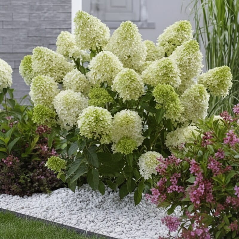 Hortensja bukietowa ‘Magical Lime Sparkle’ wygląda jak gotowa dekoracja, która zmienia się w czasie. Jej kwiaty startują jasno, a potem pojawia się przyjemny, limonkowy ton, który potrafi rozświetlić rabatę nawet w pochmurny dzień. Kwiatostany są duże i gęste, a krzew trzyma je wysoko, więc całość wygląda schludnie i „na bogato” bez podpierania. Ta odmiana daje długi pokaz – od lata aż do jesieni – i świetnie sprawdza się zarówno w ogrodzie, jak i w większej donicy przy tarasie. Jeśli chcesz rośliny, która robi efekt wow, a jednocześnie jest prosta w prowadzeniu, to ten limonkowy akcent zostaje w pamięci i daje kolor przez wiele tygodni.