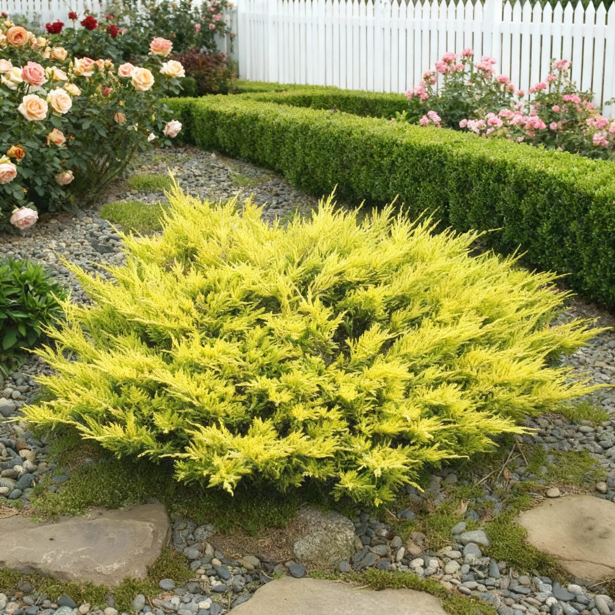 ‘Limeglow’ tworzy niską, miękką poduchę w soczyście limonkowym kolorze, który od razu rozświetla każdy zakątek ogrodu. Latem jest jasno-złoty, a gdy robi się chłodniej, delikatnie wpada w bursztyn – wygląda wtedy jak mała, ciepła poświata na rabacie. Rośnie szeroko, ale spokojnie, dzięki czemu łatwo nim „domkniesz” brzegi ścieżek, skarpy czy miejsce pod wyższymi krzewami. To świetny wybór, jeśli chcesz dodać ogrodowi czystego koloru bez wysiłku.