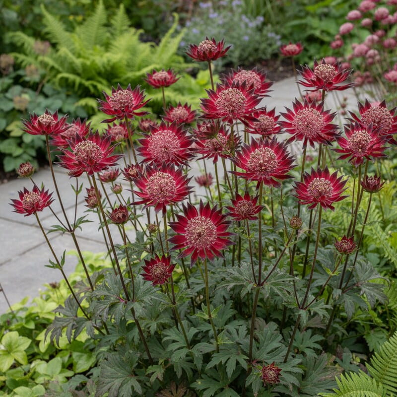 Jarzmianka większa ‘Hadspen Blood’ zachwyca głębokim, bordowym kolorem kwiatów, który wygląda jak kropla wina rozlana na zielonym tle rabaty. Jej kwiaty przypominają małe, eleganckie gwiazdy z delikatną obwódką – subtelne, a jednocześnie wyraziste. To odmiana o wyjątkowo nasyconej barwie, dzięki czemu pięknie wyróżnia się wśród jaśniejszych bylin. Kwitnie długo i obficie, przyciąga pszczoły i motyle, a do tego świetnie nadaje się na bukiety. Jeśli marzysz o romantycznym zakątku w ogrodzie, to łatwa w uprawie bylina, która zrobi efekt bez skomplikowanej pielęgnacji.