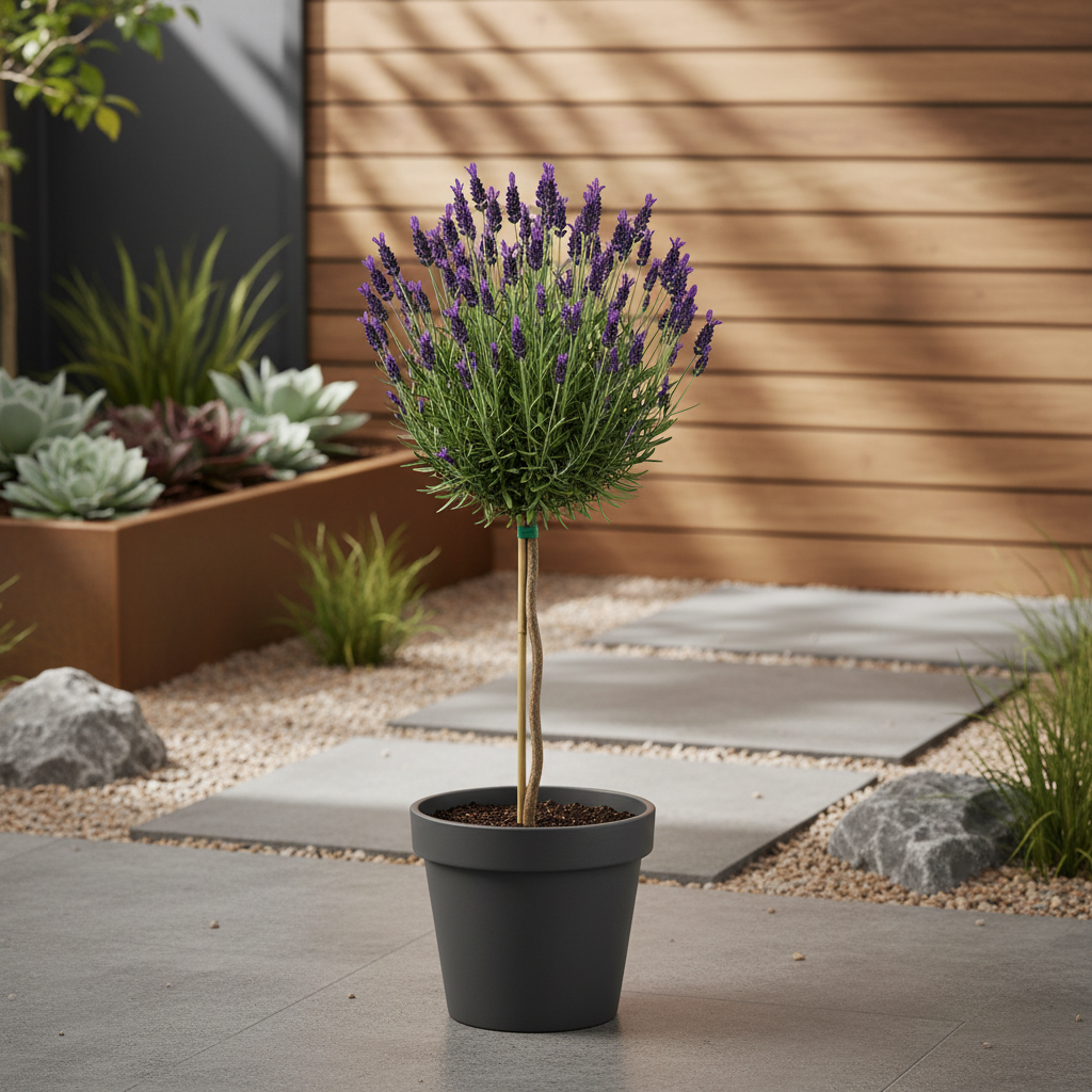 Lawenda na pniu (Lavandula) to elegancka forma, w której kulista korona pełna kwiatów osadzona jest na prostym pniu. Tworzy efekt fioletowej, pachnącej kuli unoszącej się nad rabatą, która przyciąga wzrok i wprowadza śródziemnomorski klimat. Podczas kwitnienia obsypuje się drobnymi kwiatami i roztacza przyjemny zapach. Świetnie sprawdzi się na tarasie, balkonie lub przy wejściu do domu. To roślina, która daje dekoracyjny wygląd i aromat w jednym.