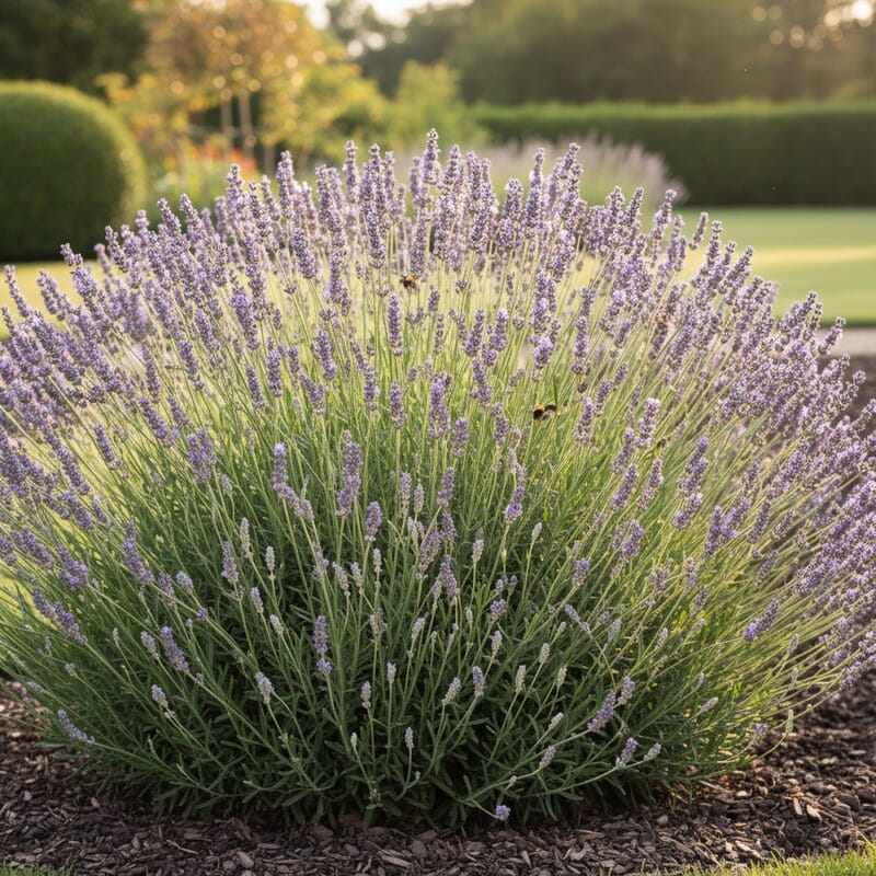 Lawenda pośrednia ‘Grappenhall’ to elegancka bylina o intensywnie fioletowych kwiatach i srebrzystych liściach, które pojawiają się latem, wprowadzając do ogrodu piękny zapach i dekoracyjny akcent. Roślina tworzy zwarte, kompaktowe kępy, idealne na rabaty, skalniaki i do pojemników na tarasach i balkonach. Jej kwiaty przyciągają pszczoły i motyle, wprowadzając życie do każdej kompozycji, a łatwa pielęgnacja sprawia, że jest bezproblemowa w uprawie. Jeśli szukasz rośliny, która tworzy dekoracyjny, fioletowy akcent w ogrodzie i łatwo ją utrzymać w ogrodzie, lawenda pośrednia ‘Grappenhall’ będzie świetnym wyborem.
