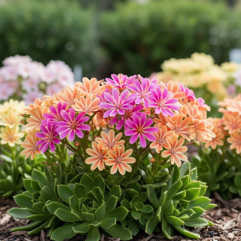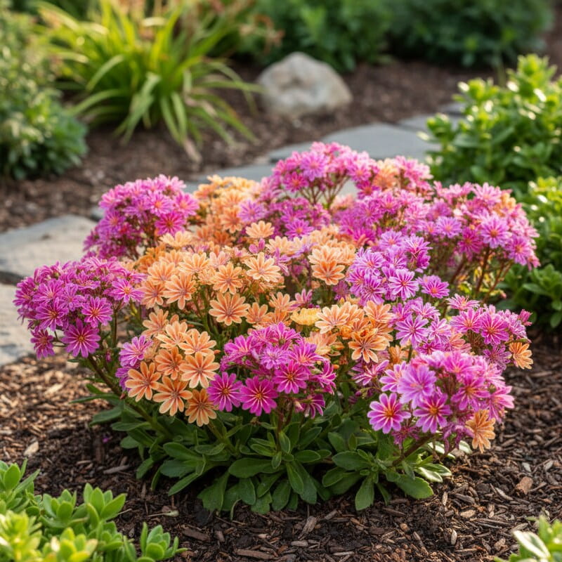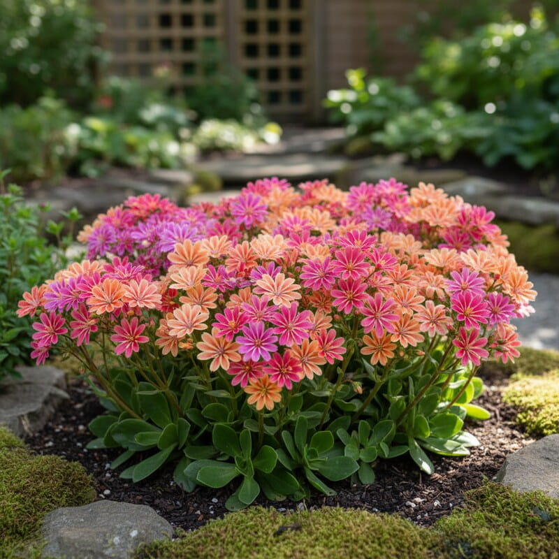 Lewizja liścieniowa ‘Mountain Dreams’ to niewielka, efektowna bylina o mięsistych, zielonych liściach i delikatnych, różowo-fioletowych kwiatach, które pojawiają się wiosną i wczesnym latem. Jej zwarty, nisko rosnący pokrój sprawia, że doskonale nadaje się do skalniaków, pojemników i przedogródka, gdzie tworzy kolorowe, przyciągające wzrok kobierce. Roślina jest odporna na słońce i lekkie susze, a jej kwiaty przyciągają owady zapylające, wprowadzając życie i ruch do ogrodu. Jeśli szukasz rośliny, która tworzy dekoracyjny, wiosenny akcent i łatwo ją utrzymać w ogrodzie, lewizja liścieniowa ‘Mountain Dreams’ będzie świetnym wyborem.