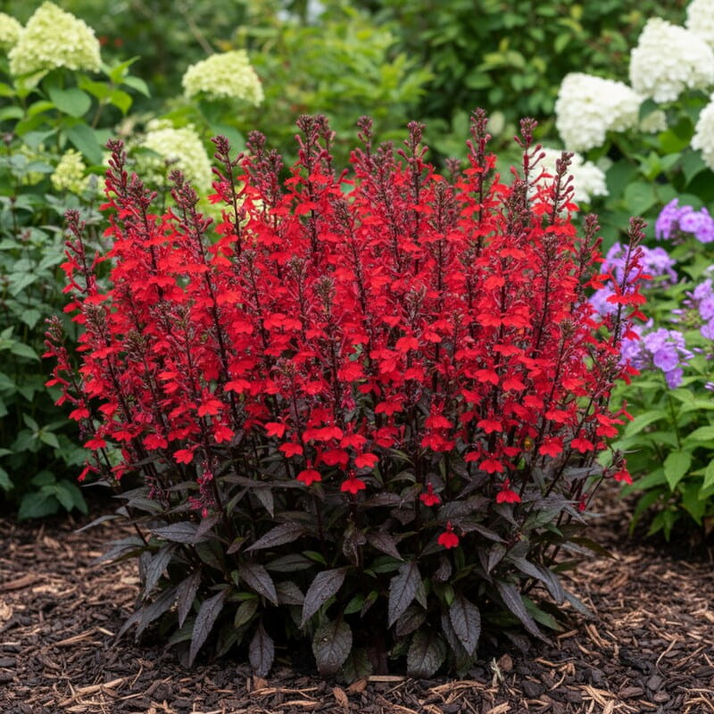 Lobelia okazała ‘Starship F1 Scarlet’ to niska, zwarta roślina o intensywnie czerwonych kwiatach, które pojawiają się od wiosny do jesieni, tworząc efektowny, kolorowy kobierzec. Jej kompaktowy pokrój sprawia, że doskonale nadaje się do rabat, obwódek, pojemników i wiszących koszy, dodając każdemu miejscu wyrazistości i radosnego koloru. Roślina przyciąga pszczoły i motyle, wprowadzając życie i ruch do ogrodu, a łatwa pielęgnacja sprawia, że jest idealna dla początkujących ogrodników. Jeśli szukasz rośliny, która tworzy intensywny, czerwony akcent w ogrodzie i łatwo utrzymać ją w ogrodzie, lobelia okazała ‘Starship F1 Scarlet’ będzie świetnym wyborem.