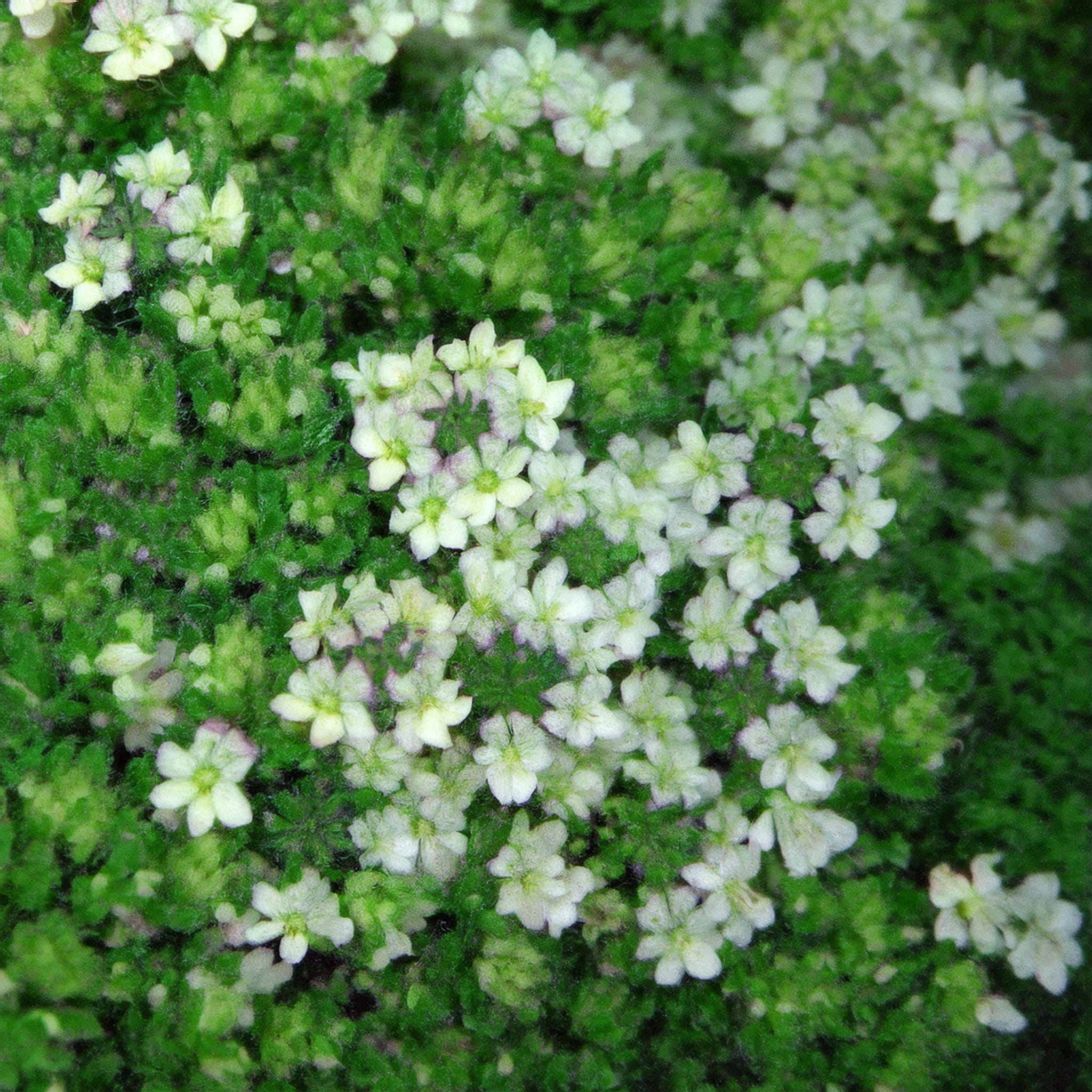 Macierzanka ‘Albus’ (Thymus serpyllum ‘Albus’) to niska, zadarniająca bylina o delikatnych, białych kwiatach i aromatycznych, drobnych liściach. Dorasta do około 5–10 cm wysokości, tworząc gęste, przyziemne kobierce, które z powodzeniem mogą zastępować trawnik w słonecznych, suchych miejscach. W czerwcu i lipcu roślina obsypuje się drobnymi, śnieżnobiałymi kwiatami, które przyciągają pszczoły i inne owady zapylające. Jej liście po roztarciu wydzielają charakterystyczny, przyjemny zapach – typowy dla tymianku.