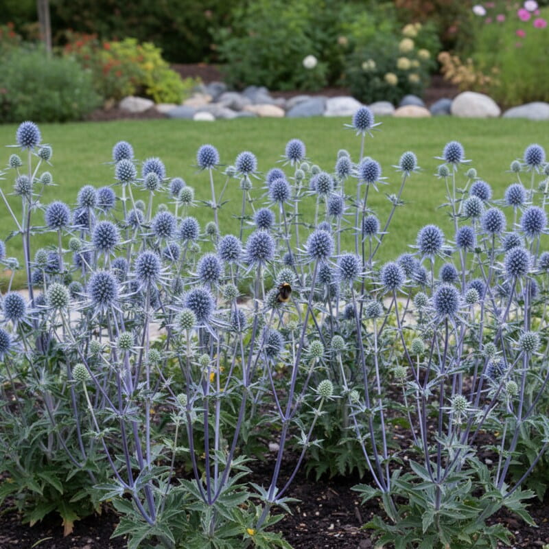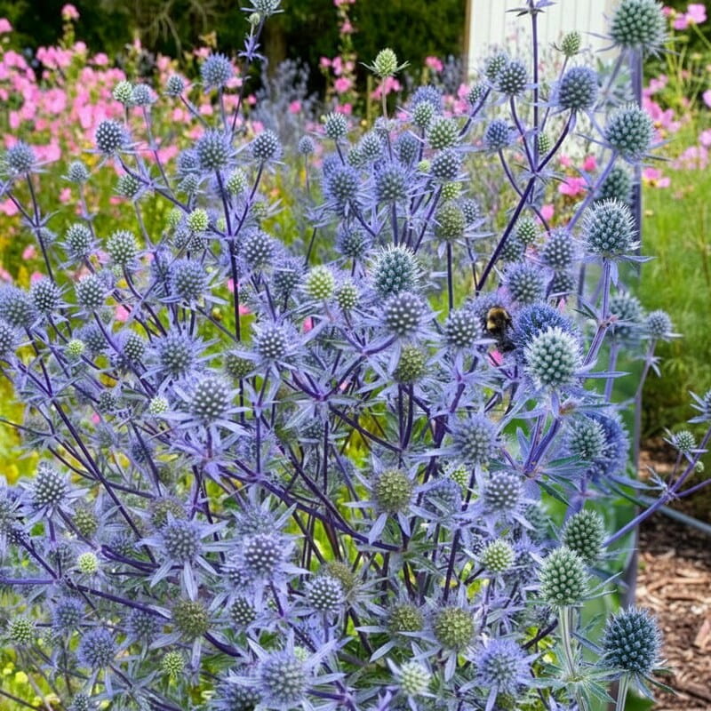 Mikołajek płaskolistny ‘Blaukappe’ to dekoracyjny krzew o ciemnozielonych, lekko mięsistych liściach i niezwykle efektownych, intensywnie niebieskich kwiatach pojawiających się latem. Roślina tworzy zwarte, kuliste kępy, które dodają ogrodowi struktury i egzotycznego charakteru. Jej kwiaty przyciągają pszczoły i motyle, wprowadzając życie i kolor do rabat, skalniaków i pojemników. Jeśli szukasz rośliny, która tworzy efektowne, niebieskie kwiaty i zwarty pokrój i łatwo utrzymać ją w ogrodzie, mikołajek płaskolistny ‘Blaukappe’ będzie doskonałym wyborem.
