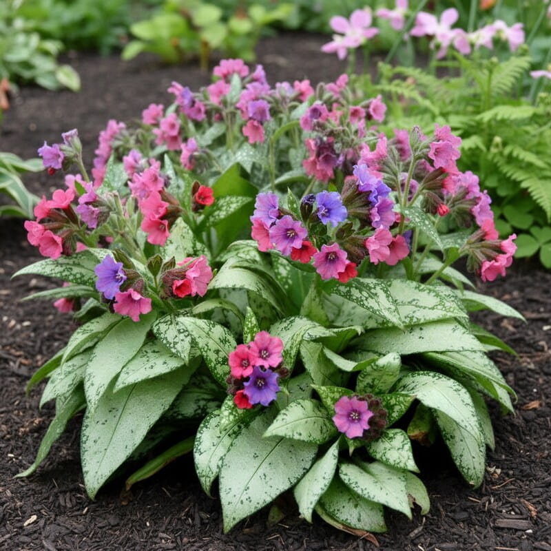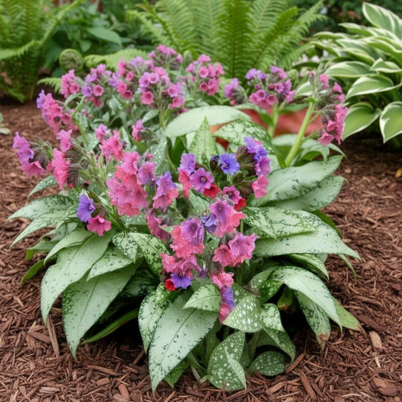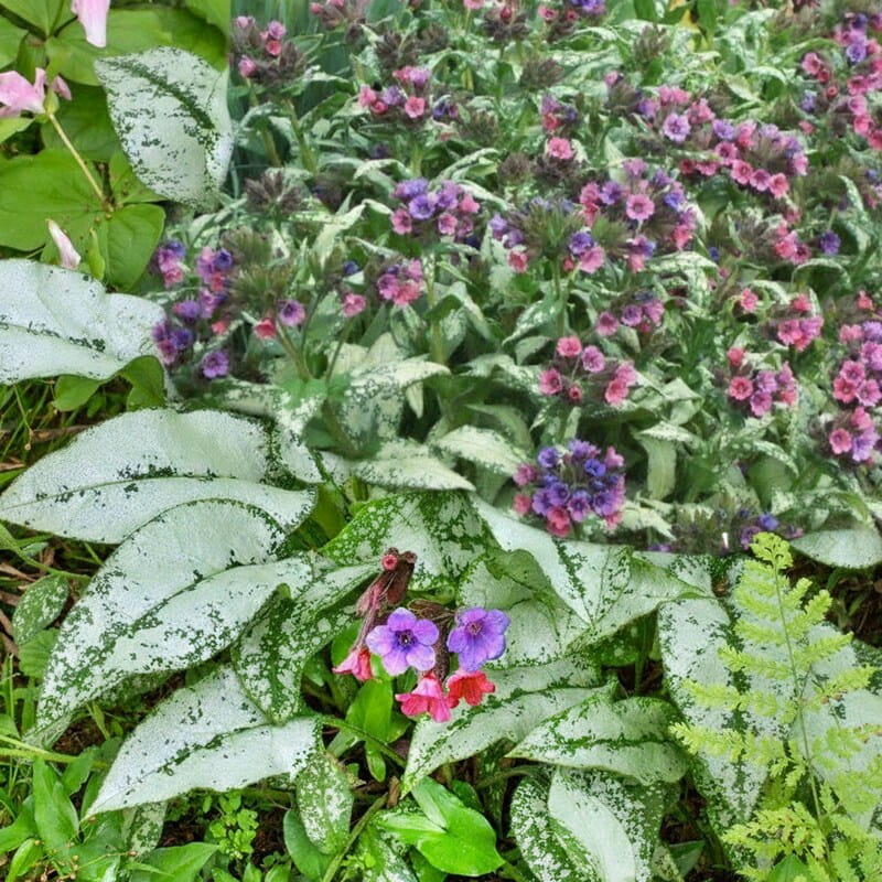 Miodunka ‘Silver Bouquet’ to wyjątkowa bylina o dekoracyjnych, srebrzystych liściach, które wyglądają jak lekko oprószone metalicznym pyłem. Wczesną wiosną pojawiają się drobne kwiaty zmieniające kolor z różowego na niebieskofioletowy, tworząc subtelny, wielobarwny efekt. Ta odmiana wyróżnia się jasnym ulistnieniem, które rozświetla cieniste zakątki ogrodu. Świetnie sprawdza się pod drzewami, przy ścieżkach i w naturalnych rabatach. To roślina, która daje dekoracyjność przez cały sezon bez dużego wysiłku.