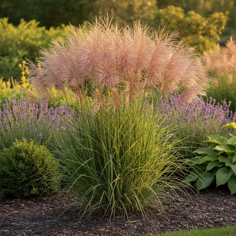 Miskant chiński ‘Nippon’ to efektowna trawa ozdobna o smukłym pokroju i delikatnie przewieszających się liściach. Tworzy kępę przypominającą wysoką, zieloną fontannę poruszającą się na wietrze, która dodaje ogrodowi lekkości. Pod koniec lata pojawiają się jasne, puszyste kwiatostany, które długo utrzymują się na roślinie i zmieniają odcień wraz z porami roku. Odmiana wyróżnia się elegancką formą i uniwersalnością w nasadzeniach. To roślina, która daje naturalny efekt i wyraźną strukturę bez wysiłku.
