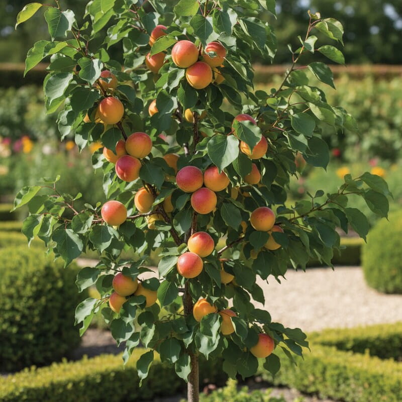 ‘ApriGold’ to mini morela o zwartym, kompaktowym pokroju i małych, słodkich, złocistych owocach, które dojrzewają latem. Jej owoce mają intensywny aromat i nadają się idealnie do jedzenia prosto z drzewa, na desery, soki czy przetwory. Roślina zachwyca wiosennymi, delikatnymi kwiatami, które później przechodzą w aromatyczne owoce, dodając ogrodowi dekoracyjnego uroku. Dzięki niewielkim rozmiarom świetnie sprawdza się w donicach, na tarasach oraz w małych ogrodach. To idealny wybór, jeśli chcesz cieszyć się słodkimi, dekoracyjnymi owocami w ograniczonej przestrzeni.