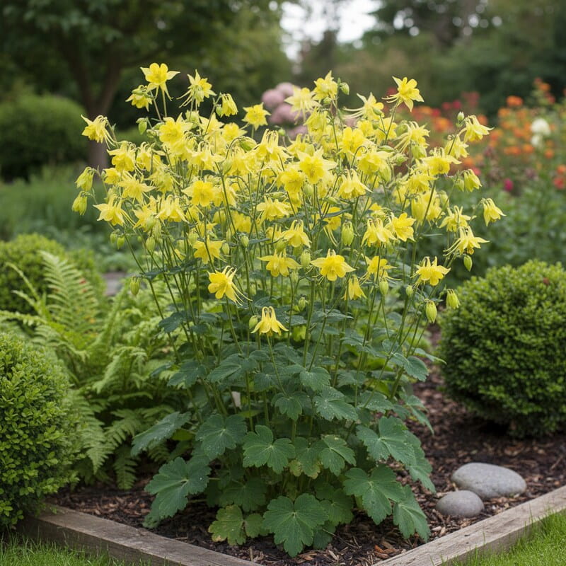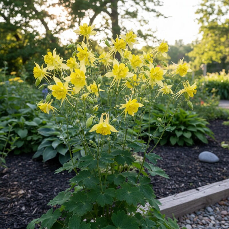 Orlik złocisty to wiosenny promień słońca na rabacie. Jego żółte, delikatnie pachnące kwiaty wyglądają jak lekkie dzwoneczki, które kołyszą się przy każdym podmuchu wiatru. Roślina tworzy zgrabną, ażurową kępę i wnosi do ogrodu miękkie, ciepłe światło już na początku sezonu. Pięknie rozjaśnia półcień, zwłaszcza wśród ciemniejszych liści innych bylin. A do tego jest wyjątkowo łatwy w uprawie i chętnie zakwita co roku, czasem w nowych odcieniach dzięki naturalnemu wysiewowi.