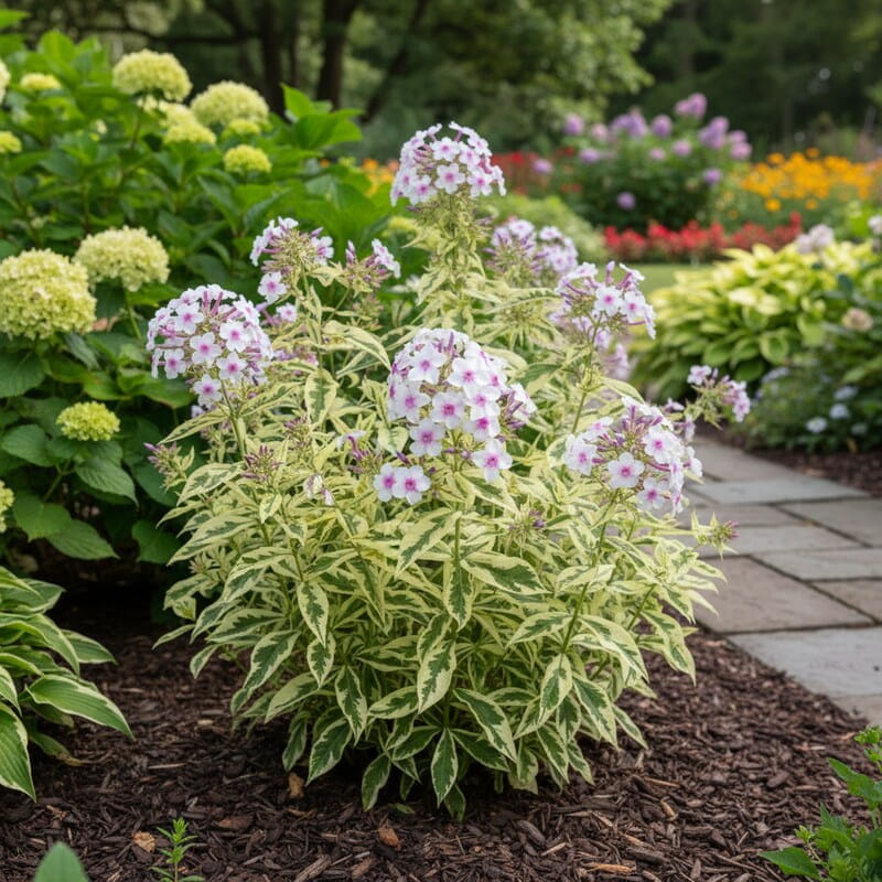 ‘Crème de Menthe’ to płomyk o niezwykle świeżnym wyglądzie – jego jasnozielone liście tworzą elegancką kępę, a nad nią latem pojawiają się miękkie, biało-kremowe wiechy kwiatów. Całość wygląda lekko i chłodno, jak powiew wiatru w upalny dzień. Odmiana ta świetnie rozjaśnia rabaty i delikatnie podkreśla sąsiednie kolory, nie dominując kompozycji. To idealny wybór, jeśli chcesz wprowadzić subtelność i naturalną elegancję. Daje spokojny, długi efekt kwitnienia i świetnie wypełnia przerwy między intensywniejszymi roślinami.
