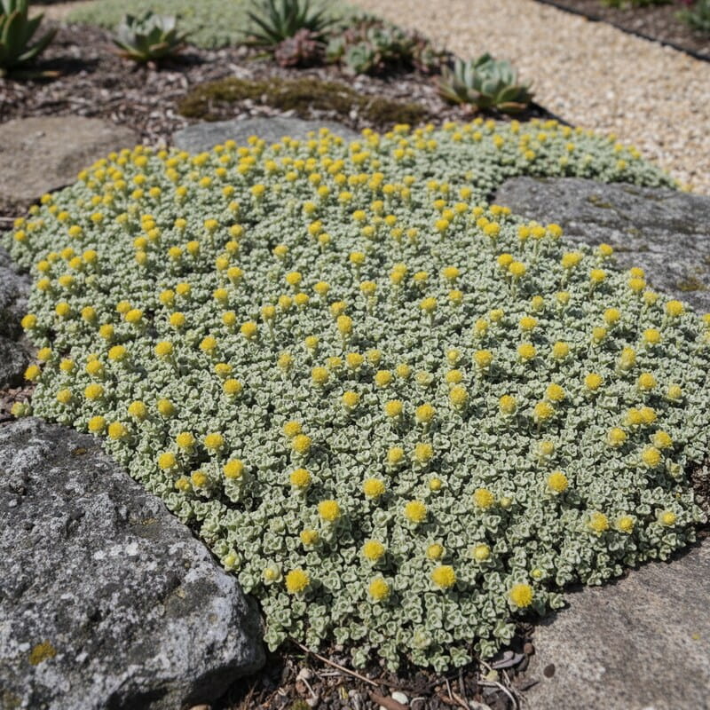 Raoulia południowa (Raoulia australis) to niezwykła roślina okrywowa, która wygląda jak miękka, srebrzysta poduszka rozłożona na ziemi. Jej drobne, gęsto ułożone listki tworzą zwartą, niską matę, przypominającą trochę mech albo miniaturowy dywan. W słońcu delikatnie połyskuje i pięknie kontrastuje z kamieniami czy ciemną ziemią. To idealny wybór, jeśli marzysz o oryginalnym, skalnym klimacie w ogrodzie. Dodatkowo jest mała, zwarta i bardzo dekoracyjna przez cały sezon, nawet bez wyraźnych kwiatów.