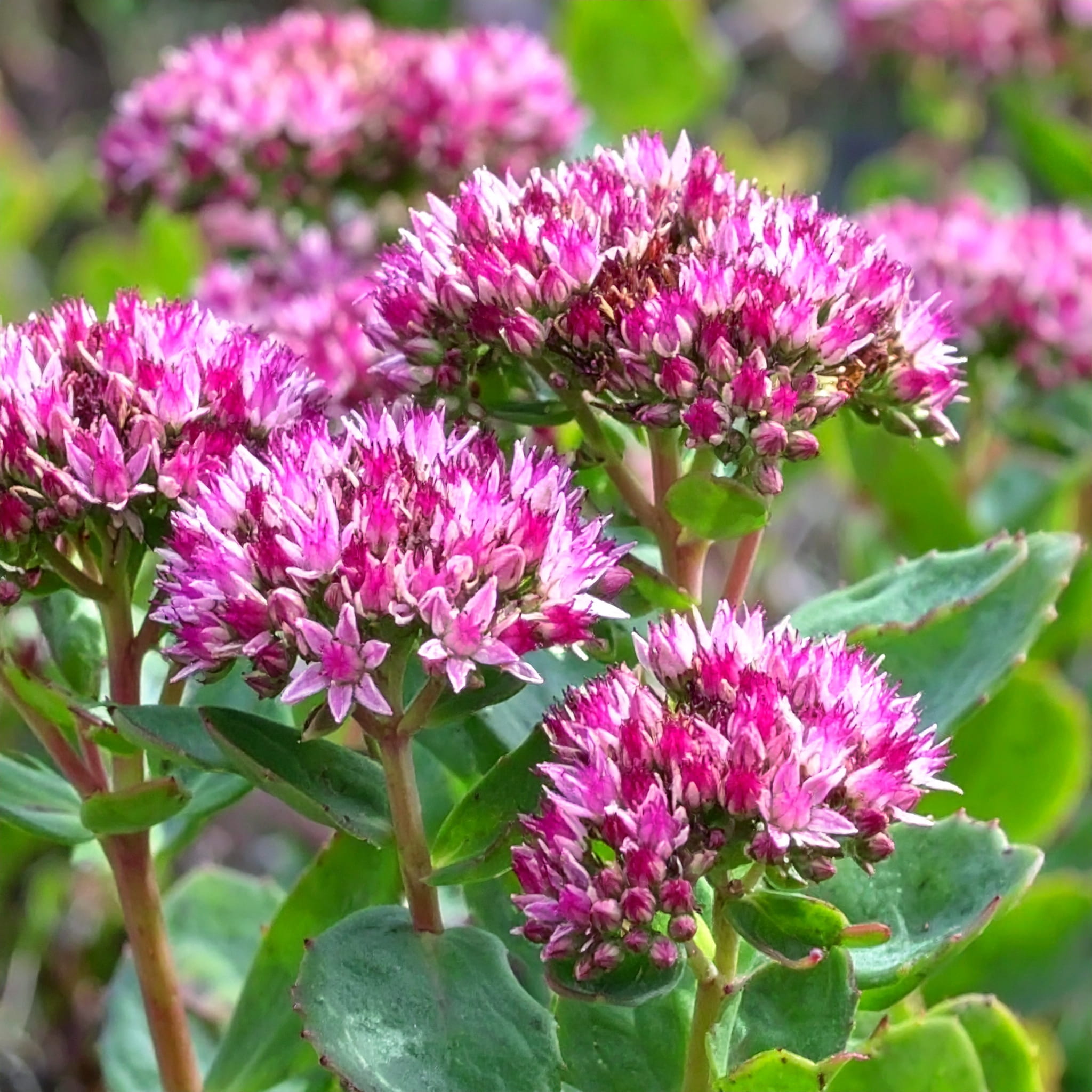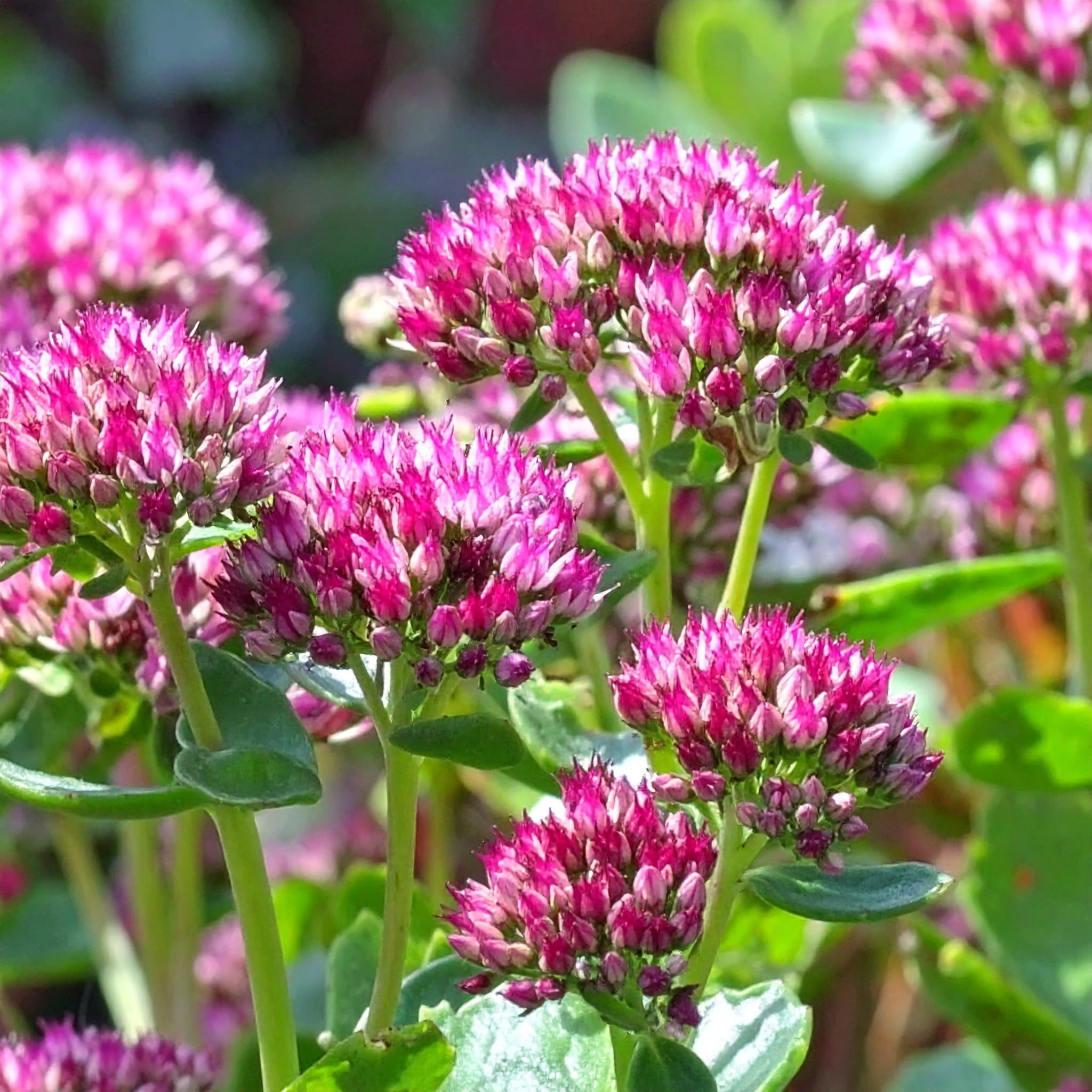 Rozchodnik okazały 'Hot Stuff' (Hylotelephium spectabile) to kompaktowa, niska odmiana rozchodnika, która zachwyca intensywnie różowymi kwiatami zebranymi w gęste, płaskie baldachy. Kwitnie od sierpnia do października, dodając koloru rabatom w okresie, gdy wiele innych roślin już przekwita. Dorasta do około 10-15 cm wysokości, tworząc zgrabne, zwarte kępy z mięsistymi, niebieskawozielonymi liśćmi, które same w sobie stanowią ozdobę przez cały sezon. 'Hot Stuff' to doskonały wybór do mniejszych ogrodów, na obwódki rabat i do donic.