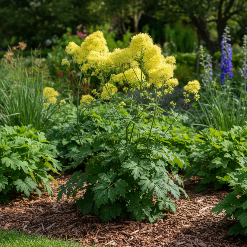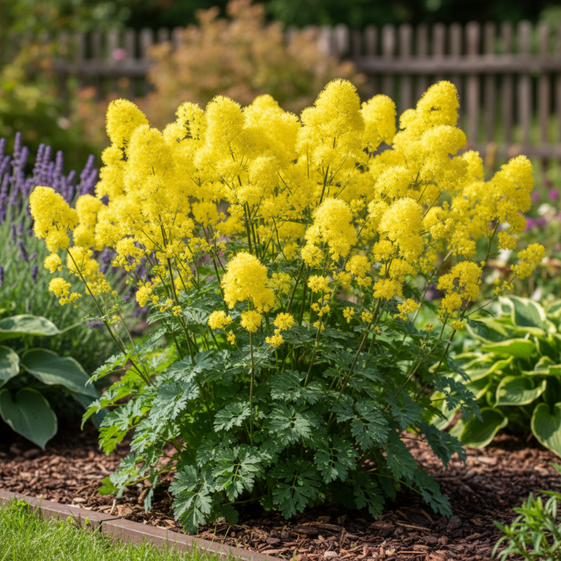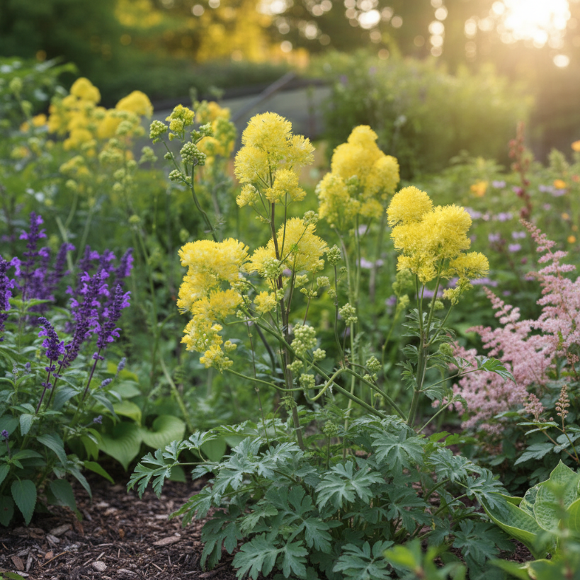 Rutewka żółta (Thalictrum flavum) to wysoka, lekka jak mgiełka bylina, która latem unosi nad rabatą chmurę drobnych, jasnożółtych kwiatów. Jej delikatne, pierzaste liście przypominają trochę orliki i tworzą miękkie tło dla innych roślin. Kiedy zakwita, wygląda jak złota poświata nad zielenią – subtelna, ale przyciągająca wzrok. To idealny wybór, jeśli chcesz dodać ogrodowi lekkości i naturalnego uroku bez ciężkich, masywnych form. Dodatkowy plus? Świetnie radzi sobie w wilgotniejszych miejscach i przyciąga owady zapylające.