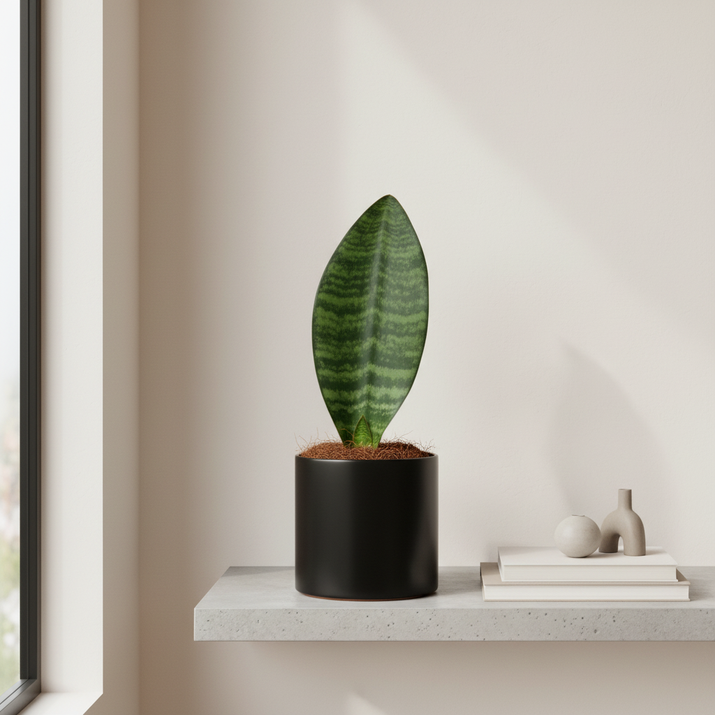 Sansewieria ‘Congo’ to nowoczesna roślina doniczkowa o szerokich, mocnych liściach ustawionych pionowo jak zielone, rzeźbiarskie formy wyrastające z donicy. Jej liście są ciemnozielone, lekko błyszczące i tworzą zwartą, elegancką kępę. Roślina wygląda minimalistycznie i bardzo stylowo, pasując do każdego wnętrza. Jest niezwykle odporna i dobrze radzi sobie nawet przy rzadszym podlewaniu. To roślina, która daje efekt designerskiego wnętrza bez wysiłku.