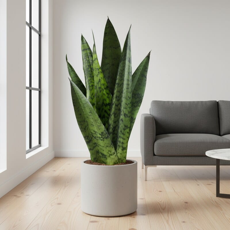 Sansewieria ‘Musica’ (Sansevieria zeylanica) to nowoczesna roślina doniczkowa o długich, wąskich liściach ułożonych pionowo jak zielone, wyprostowane miecze ustawione w rytmiczny wachlarz. Liście mają subtelne, szarozielone wzory, które dodają jej elegancji. Roślina rośnie powoli i zajmuje niewiele miejsca, a przy tym świetnie oczyszcza powietrze. Idealnie pasuje do biura, salonu czy sypialni. To roślina, która daje stylowy wygląd i minimum pielęgnacji.