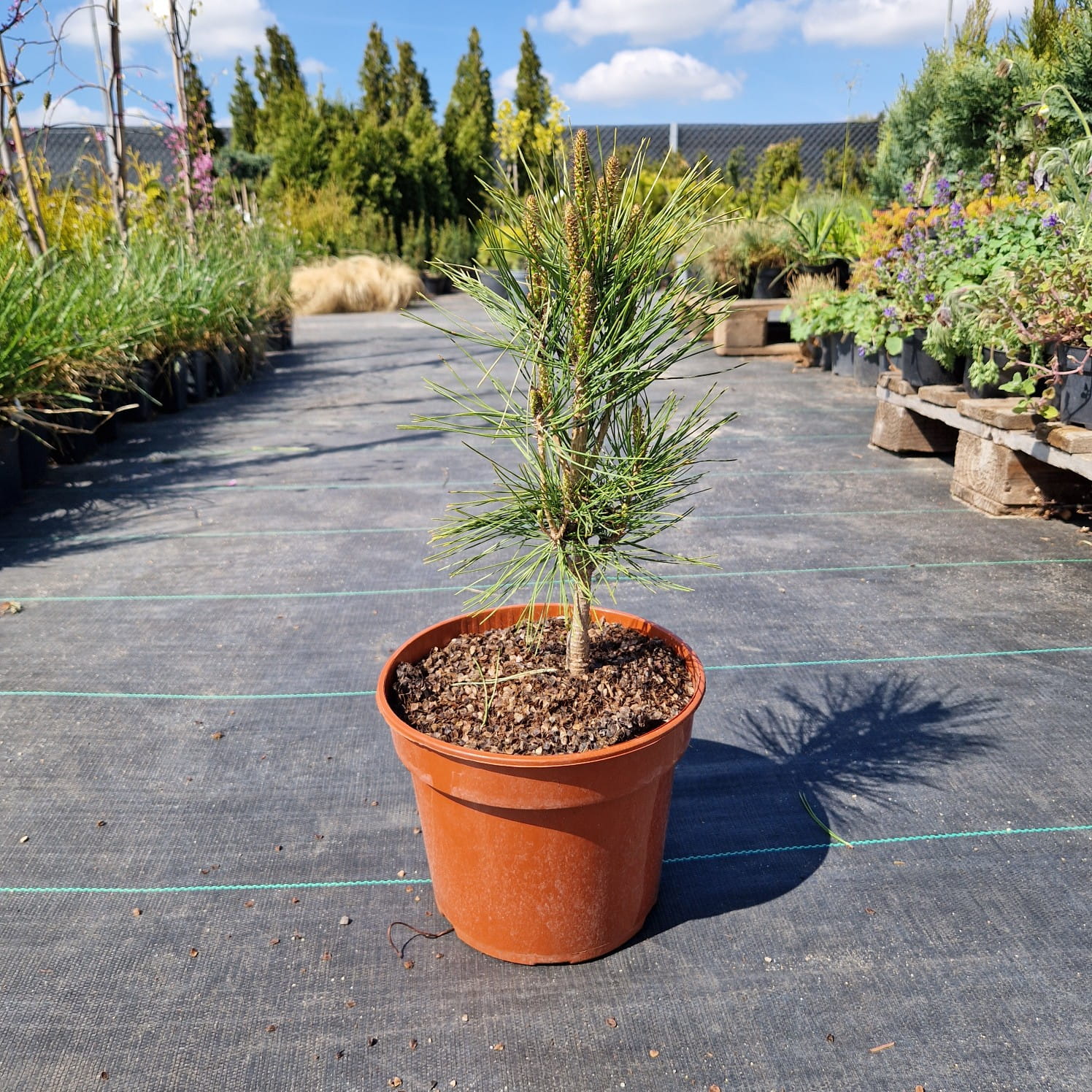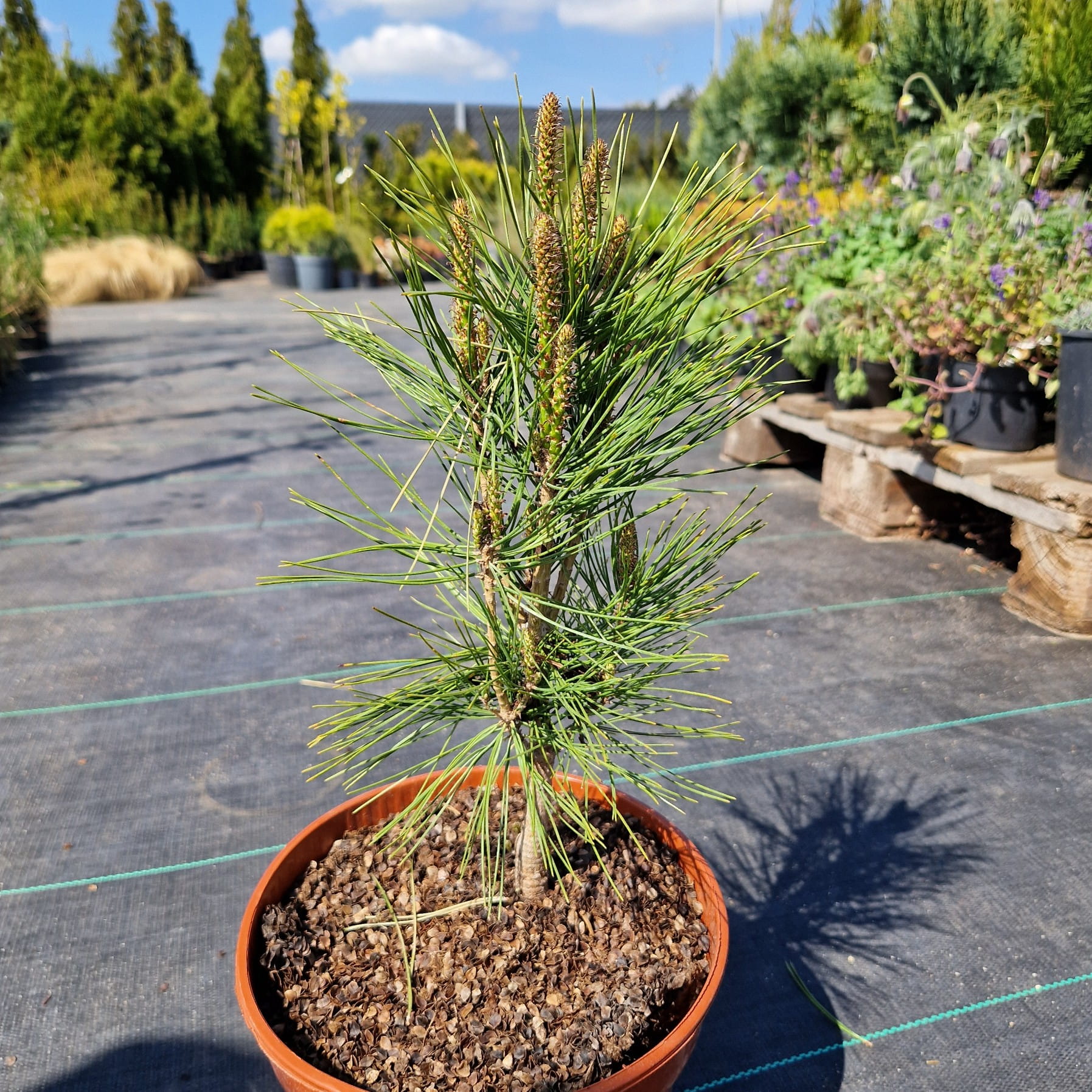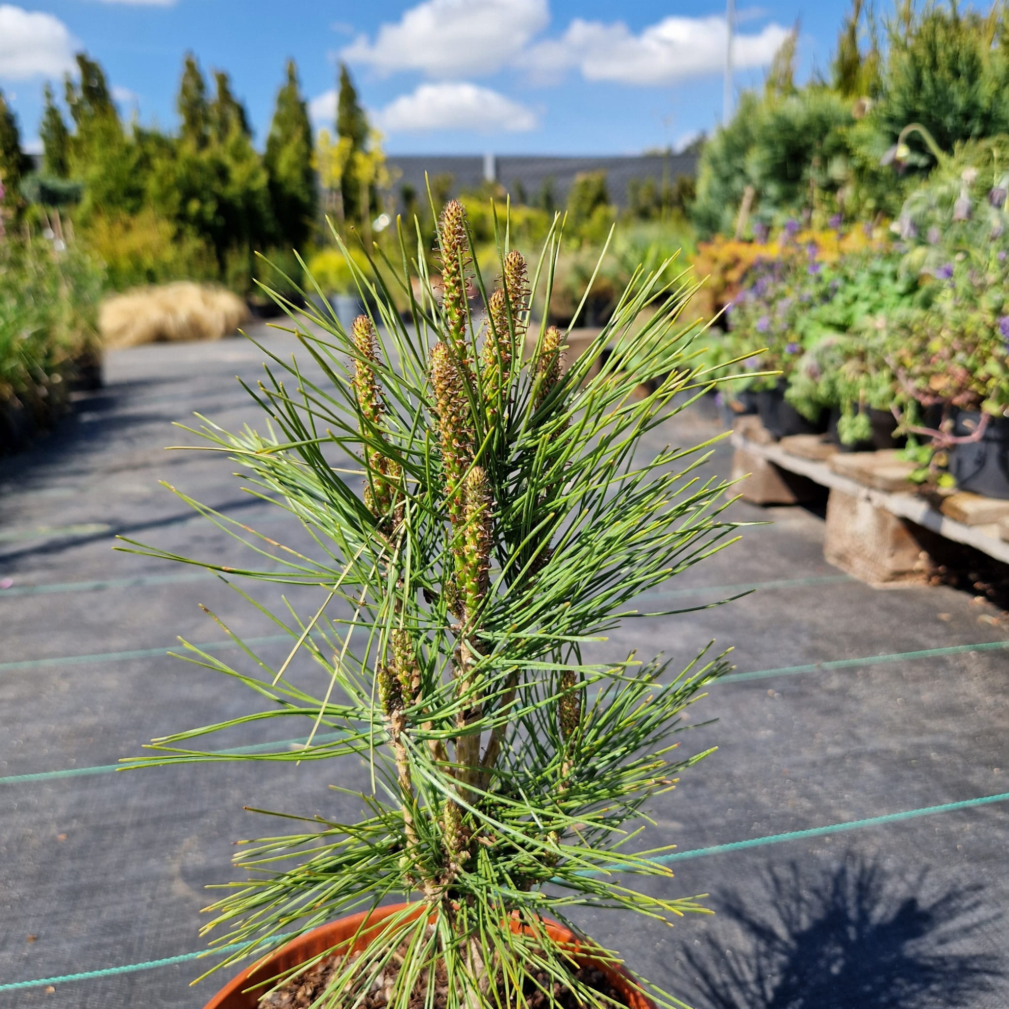 Sosna gęstokwiatowa ‘Umbraculifera’ (Pinus densiflora) to wyjątkowa odmiana o charakterystycznym, parasolowatym pokroju. Jej miękkie, zielone igły tworzą szeroką, spłaszczoną koronę, przypominającą naturalny zielony parasol unoszący się nad ogrodem. Z wiekiem nabiera malowniczego, lekko bonsaiowego wyglądu. Roślina nie zrzuca igieł na zimę, dzięki czemu zdobi przestrzeń przez cały rok. To idealny wybór dla osób szukających oryginalnej formy i spokojnej, eleganckiej zieleni.