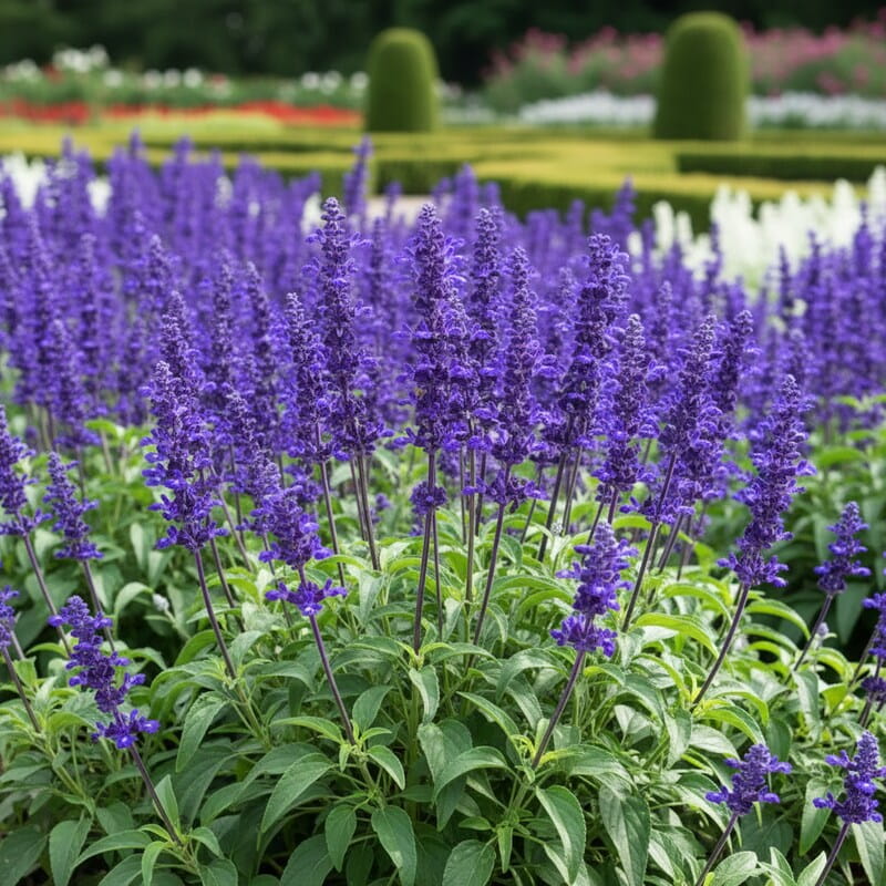 Szałwia omączona lubi pełne słońce i zwykłą ogrodową ziemię, która nie zatrzymuje wilgoci. Podlewaj ją w czasie upałów, ale pozwól ziemi lekko przeschnąć między podlewaniami. Usuwaj przekwitłe kwiatostany, by pobudzić roślinę do ponownego kwitnienia. Uważaj na miejsca zbyt wilgotne — tam roślina może słabnąć. W zamian otrzymasz długie, intensywne i niezwykle trwałe kwitnienie aż do jesieni.