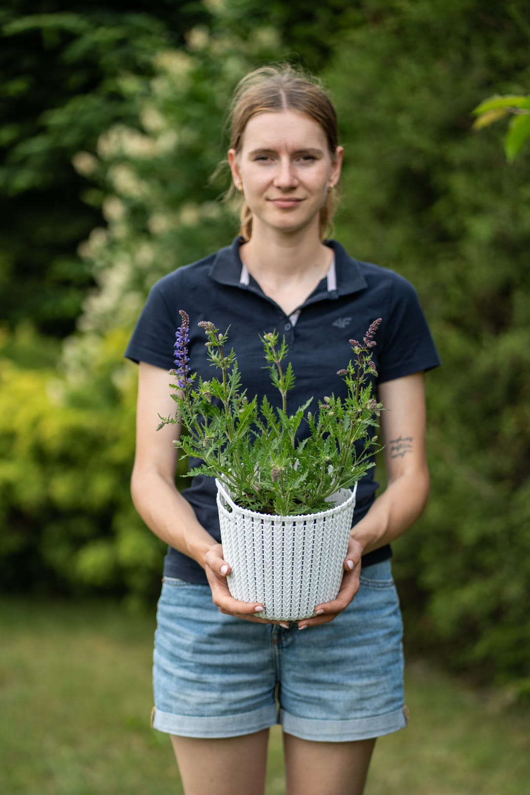 ‘Victoria Blau’ zachwyca intensywnie niebieskimi, smukłymi świecami kwiatów, które unoszą się nad gęstą, zieloną kępą liści. Kolor jest głęboki i chłodny, przez co roślina pięknie kontrastuje z cieplejszymi barwami rabaty. Kwitnie długo i obficie, tworząc wrażenie lekkiej, drżącej chmury nad roślinami towarzyszącymi. Idealna do ogrodów naturalnych, przy ścieżkach i w donicach na tarasach. Pokochasz ją za pewne, długie i niezwykle efektowne kwitnienie przez cały sezon.