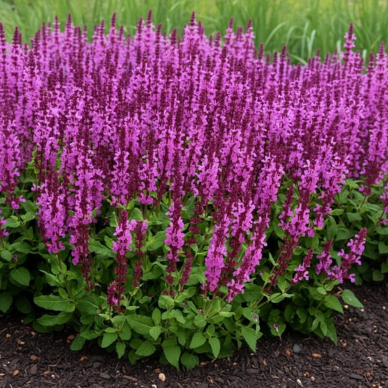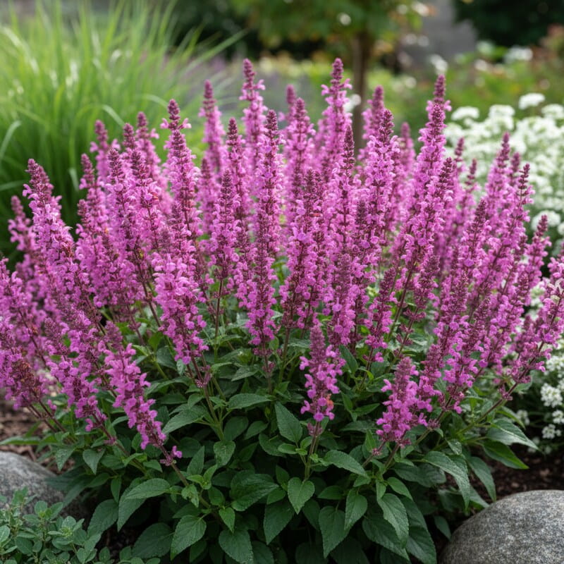 ‘Sensation Compact Bright Rose’ to niska, wyjątkowo zwarta szałwia, która latem rozświetla rabaty soczystym, różowym kolorem. Jej kwiatostany są gęste i pełne energii, a kępa utrzymuje ładną, równą formę nawet bez cięcia. Kwitnie długo i obficie, przyciągając motyle i dodając ogrodowi lekkości. Świetnie sprawdza się w małych ogrodach i donicach, gdzie każdy centymetr liczy się podwójnie. Pokochasz ją za kompaktowy pokrój i intensywny, letni kolor, który nie ginie na rabacie.
