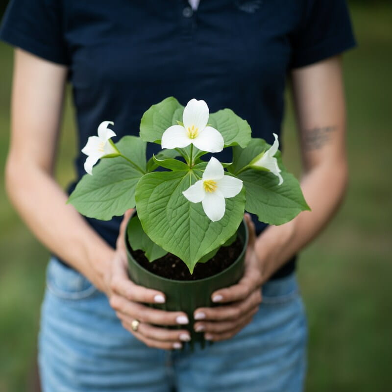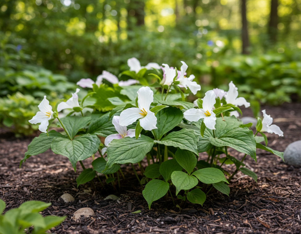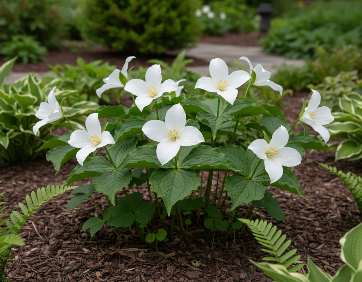 Trójlist wielkokwiatowy (Trillium grandiflorum) to wiosenny skarb do cienistych zakątków ogrodu. Z ziemi wyrastają trzy szerokie liście, a nad nimi pojawia się duży, śnieżnobiały kwiat – prosty, elegancki, jak mała porcelanowa gwiazda. Z czasem płatki delikatnie różowieją, co dodaje mu uroku i sprawia, że rabata żyje zmianą. To roślina, która tworzy naturalny, leśny klimat i z roku na rok wygląda coraz lepiej. Jeśli marzysz o czymś wyjątkowym, a jednocześnie spokojnym w wyrazie, to wiosenna ozdoba do cienia bez wysiłku.