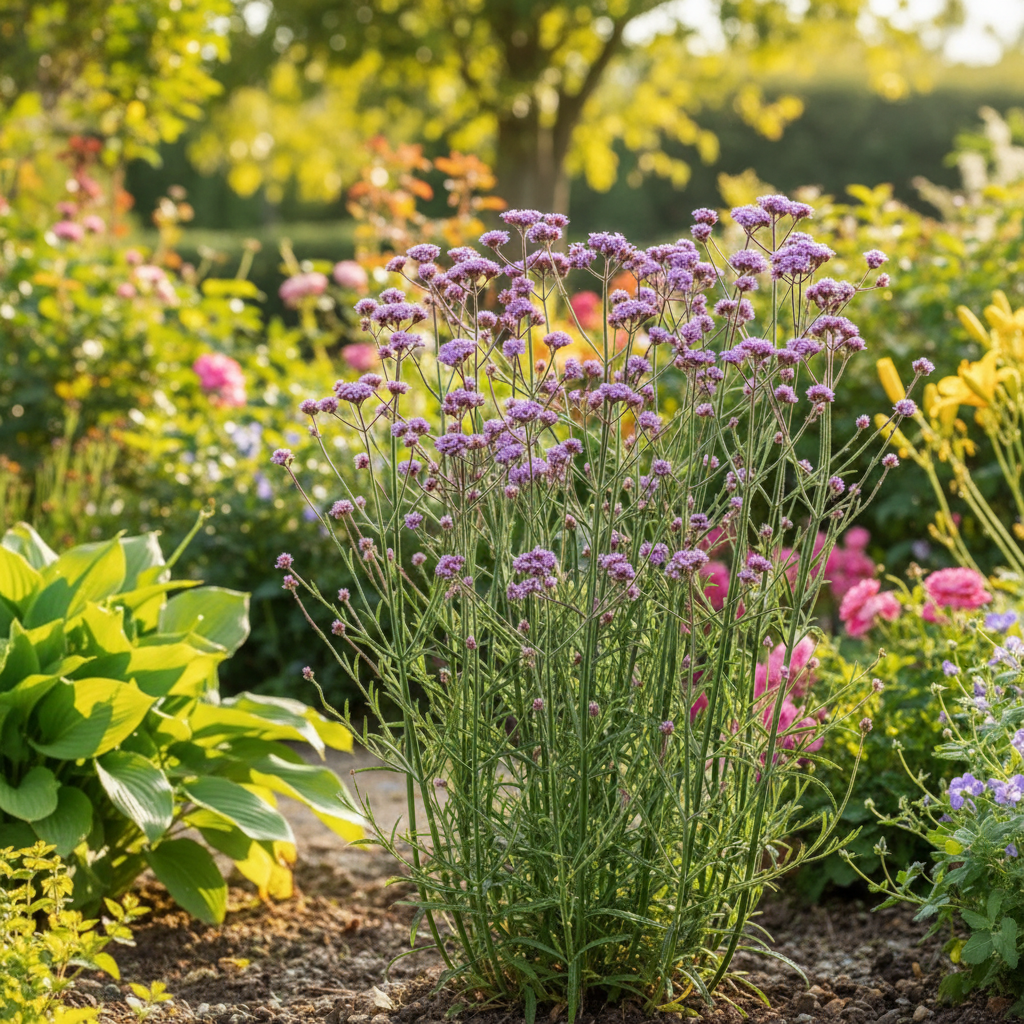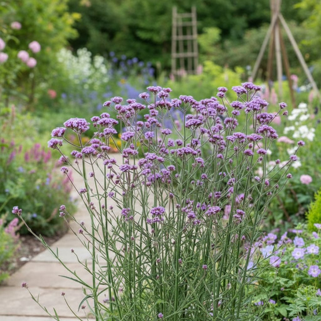 Werbena patagońska ‘Bonnie Blue’ (Verbena bonariensis) to elegancka, patagońska bylina o wyjątkowo smukłym pokroju i nasyconych niebieskofioletowych kwiatostanach, unoszących się wdzięcznie na cienkich łodygach. Kwitnie od czerwca aż do października, tworząc delikatną mgiełkę barw i przyciągając motyle oraz pszczoły. Roślina osiąga około 80–100 cm wysokości, z luźnym, otwartym pokrojem, co daje lekki, naturalny efekt w każdej kompozycji. Jej wyjątkowo dekoracyjne, intensywnie niebieskie kwiaty nadają ogrodowi subtelnej elegancji, szczególnie wzdłuż ścieżek czy w tle bylinowych rabat.