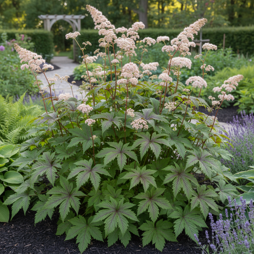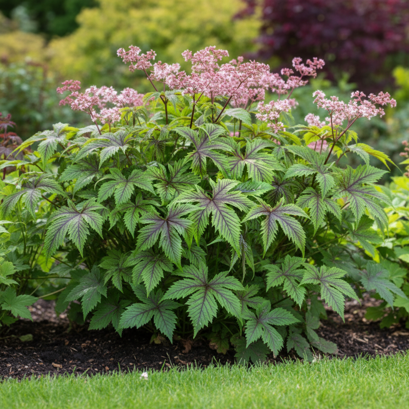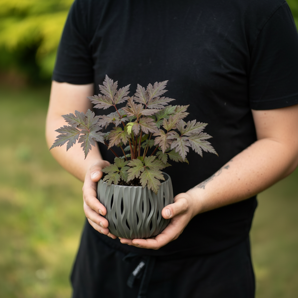 Wiązówka ‘Red Umbrellas’ to efektowna bylina, która zachwyca głębokim, bordowo-czerwonym kolorem liści i lekkimi, puszystymi kwiatami unoszącymi się ponad nimi jak delikatna mgiełka nad rabatą. Jej liście tworzą gęstą kępę przypominającą ozdobny wachlarz, a jasne kwiatostany pięknie kontrastują z ciemnym tłem. Ta odmiana wyróżnia się intensywnym wybarwieniem i dekoracyjnością przez cały sezon. Świetnie sprawdzi się przy oczkach wodnych, na wilgotniejszych rabatach i w naturalistycznych nasadzeniach. To roślina, która wnosi kolor i lekkość bez trudnej pielęgnacji.