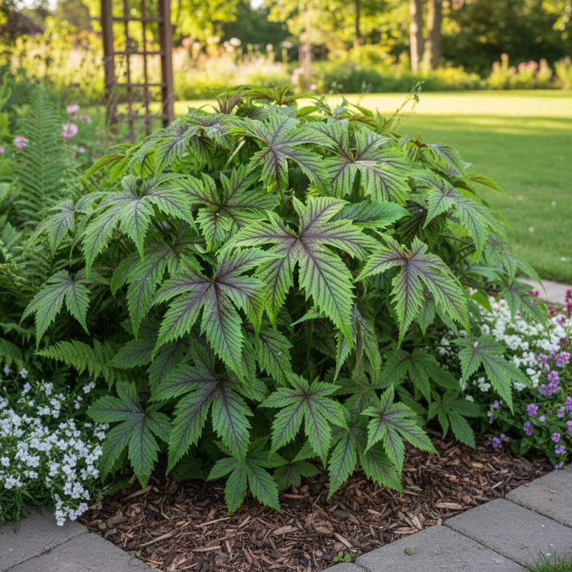 Najlepiej rośnie w półcieniu lub lekkim cieniu, gdzie liście zachowują intensywny kolor i nie przypalają się na słońcu. Lubi zwykłą ogrodową ziemię, ale stale lekko wilgotną, dlatego nie dopuszczaj do przesuszenia podłoża. Podlewaj regularnie, szczególnie w upały i na lżejszych glebach. To roślina odporna i łatwa w uprawie, ale warto uważać na całkowite wysychanie ziemi. Na zimę część nadziemna zamiera, a wiosną odbija od nowa.