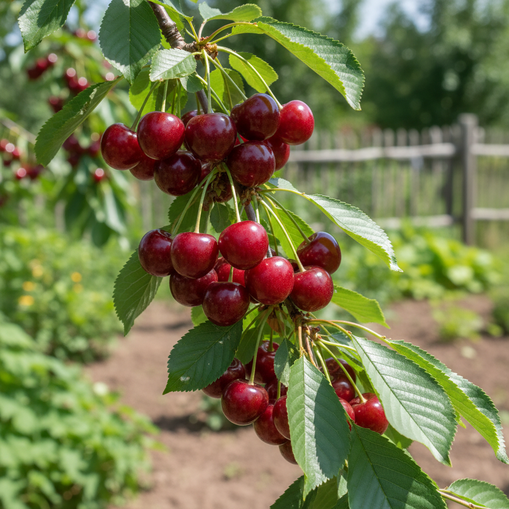 ‘Kelleris’ to wiśnia, która latem obsypuje się ciemnoczerwonymi, błyszczącymi owocami o pełnym, lekko kwaskowym smaku. Idealne na soki, dżemy, ciasta i oczywiście do podjadania prosto z drzewa. Owoce są jędrne i aromatyczne, a plon zwykle bardzo równy – co rok możesz liczyć na solidne zbiory. Drzewo rośnie umiarkowanie, tworzy przejrzystą koronę i świetnie sprawdza się także w mniejszych ogrodach. To odmiana dla osób, które chcą pewnych, smacznych owoców bez skomplikowanej pielęgnacji.