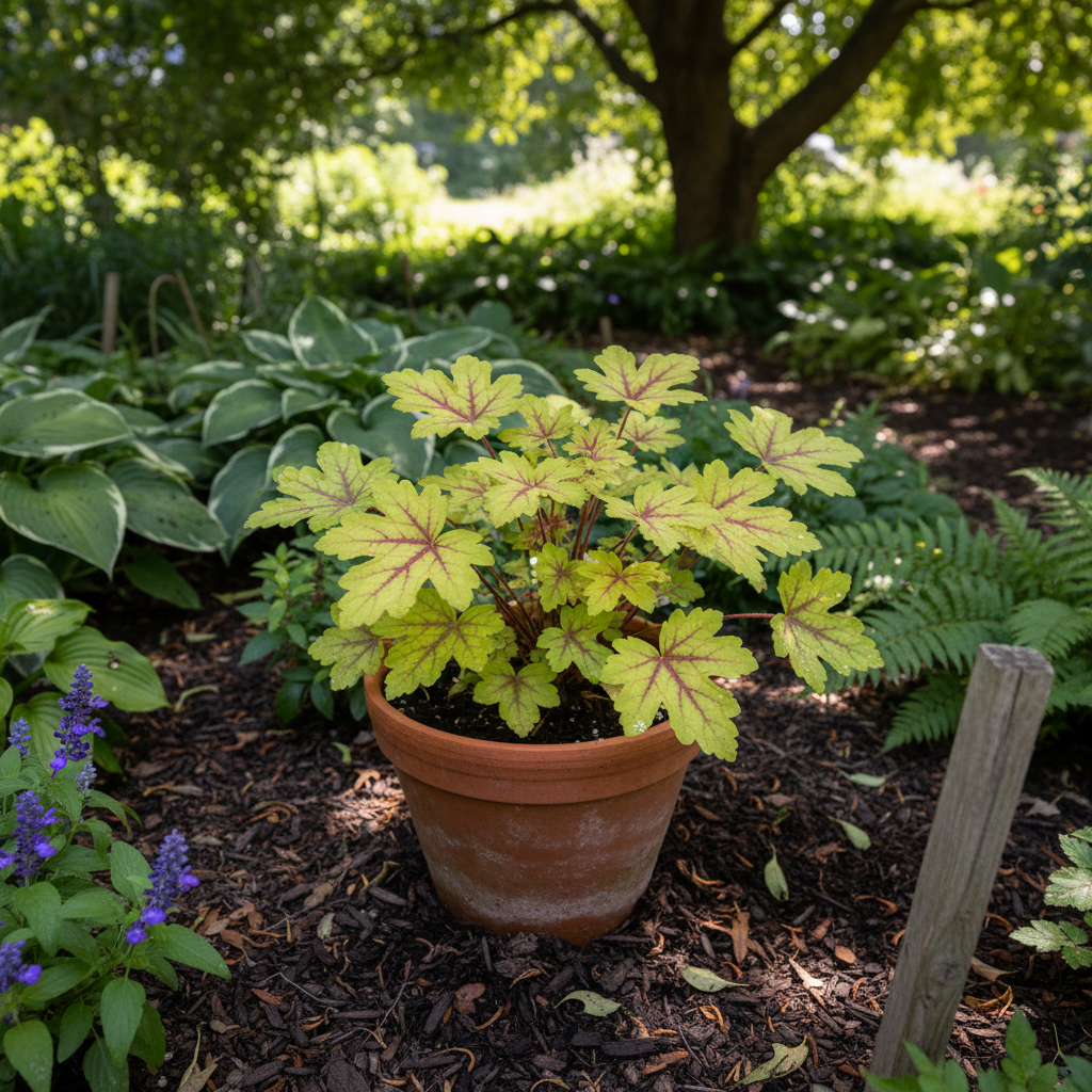 Żurawka ‘Alabama Sunrise’ najlepiej rośnie w półcieniu, ale poradzi sobie też w słońcu, jeśli ziemia nie przesycha. Posadź ją w zwykłej ogrodowej ziemi, która jest lekko wilgotna, ale nie mokra. Podlewaj regularnie, szczególnie w donicach i w czasie upałów. Wiosną usuń stare liście, żeby roślina szybko się odświeżyła. Uważaj tylko na zimowe zastoiska wody – to największy wróg żurawek.