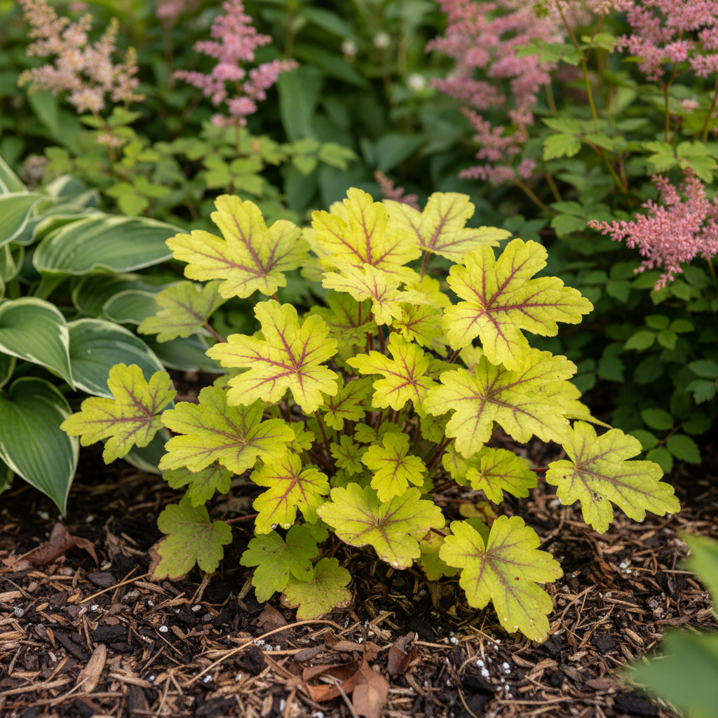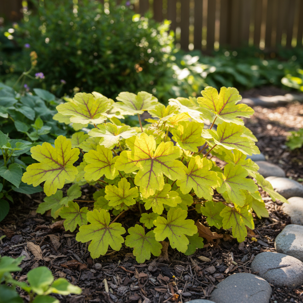 Żurawka ‘Alabama Sunrise’ to bylina, która zachwyca kolorem liści od pierwszego spojrzenia. Młode liście są intensywnie pomarańczowo-żółte, z czasem nabierają ciepłych, złocistych i zielonkawych tonów, dzięki czemu roślina cały czas wygląda inaczej. Tworzy zgrabne, niskie kępy, które pięknie rozjaśniają rabaty i donice. Latem pojawiają się drobne, jasne kwiaty na cienkich łodyżkach, ale to liście są tu największą ozdobą. Idealna, jeśli chcesz koloru w ogrodzie od wiosny do jesieni.