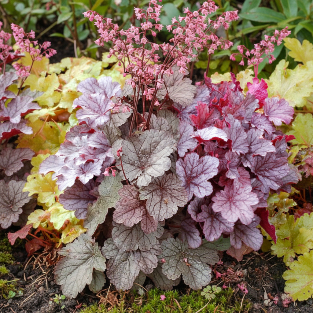 Żurawka ‘Milan’ to bardzo elegancka bylina o dużych, srebrzysto-różowych liściach z wyraźnym, ciemnym unerwieniem. Wygląda lekko, a jednocześnie wyraziście – jakby ktoś oprószył liście delikatnym połyskiem. Kolor jest intensywny od wiosny do jesieni i pięknie rozjaśnia rabaty oraz donice. Roślina tworzy zwarte, niskie kępy, które zawsze wyglądają schludnie. Latem pojawiają się drobne kwiaty na cienkich łodyżkach, ale to liście są największą ozdobą. Idealna, jeśli chcesz nowoczesnego koloru bez skomplikowanej pielęgnacji.