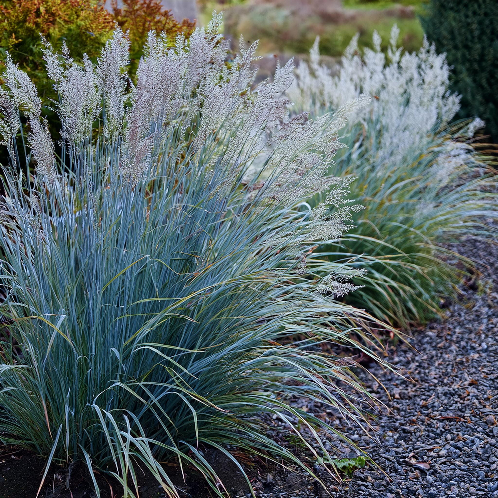 Proso rózgowate 'Heavy Metal' (Panicum virgatum) to niezwykle efektowna trawa ozdobna o smukłym, wyprostowanym pokroju. Roślina dorasta do wysokości około 1-1,2 m, tworząc zwarte kępy o metalicznie jasnoniebieskich liściach, które jesienią przebarwiają się intensywnie żółte odcienie. Od lipca roślina zdobi się delikatnymi, ażurowymi wiechami kwiatostanów o różowawym odcieniu, które unoszą się nad liśćmi, nadając całości lekkości. 'Heavy Metal' wyróżnia się wyjątkową strukturą i intensywnym wybarwieniem liści, wprowadzając do ogrodu nowoczesny i elegancki akcent. Trawa doskonale sprawdza się w nasadzeniach pojedynczych, na rabatach, w kompozycjach z innymi trawami ozdobnymi czy w naturalnych aranżacjach, wprowadzając do ogrodu dynamikę i harmonię.